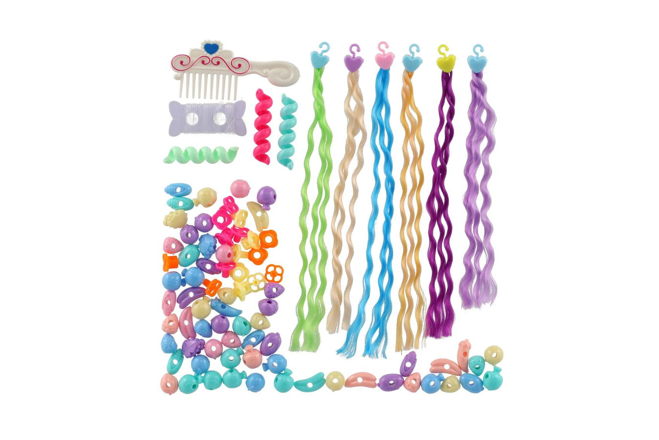 Vytvoř si vlastní originální účes. Tato barevná sada korálků a copánků je ideální pro malé parádnice, které si chtějí ozdobit vlásky podle vlastní fantazie. Korálky lze snadno navlékat a kombinovat, copánky připnout – a účes je hned jako z pohádky.