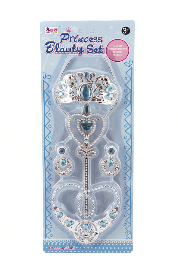 Krásná sada korunky, náušnic, náhrdelníku a žezla pro každou malou princeznu. Vhodné i na karneval. Vhodné od 3 let.