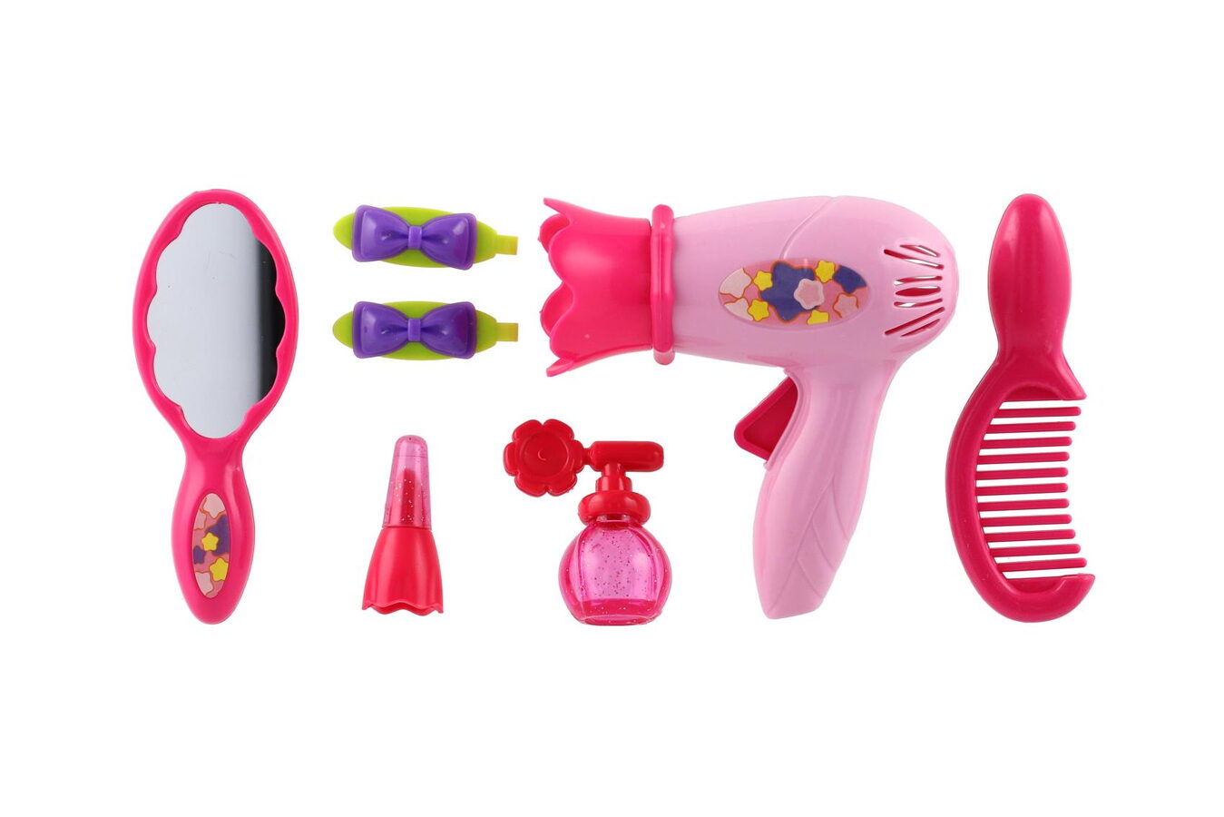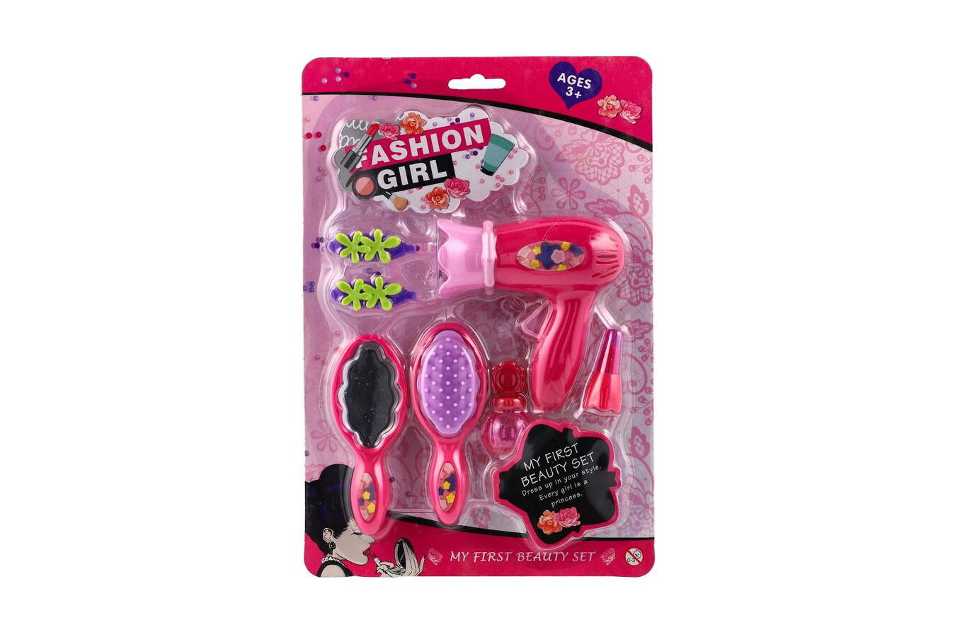 Každá malá parádnice musí mít ve své sbírce tuto sadu krásy s fénem a se spoustou doplňků. Sada je vhodná pro malé kadeřnice a kosmetičky, mohou si tak učesat a vyparádit panenku dle své fantazie. Sada je vyrobena z kvalitního plastu. Sada obsahuje 7ks doplňků včetně fénu.
