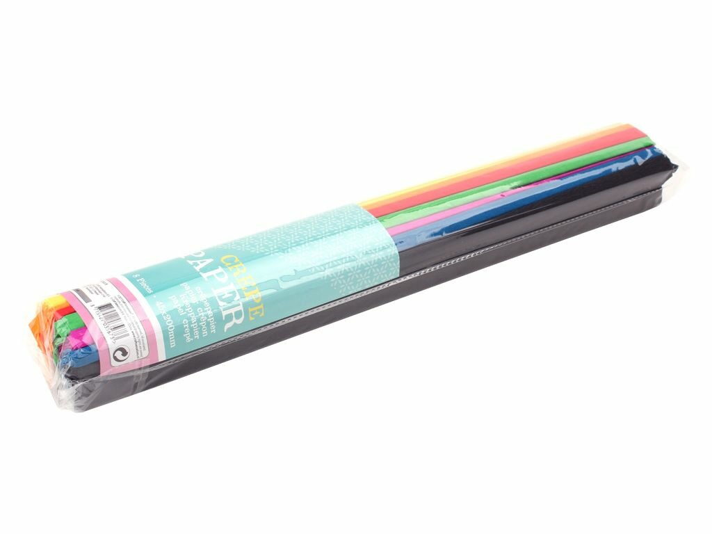 Sada krepových papírů obsahuje 8 rolí krepových papírů v různých barvách o rozměrech 200×45 cm.