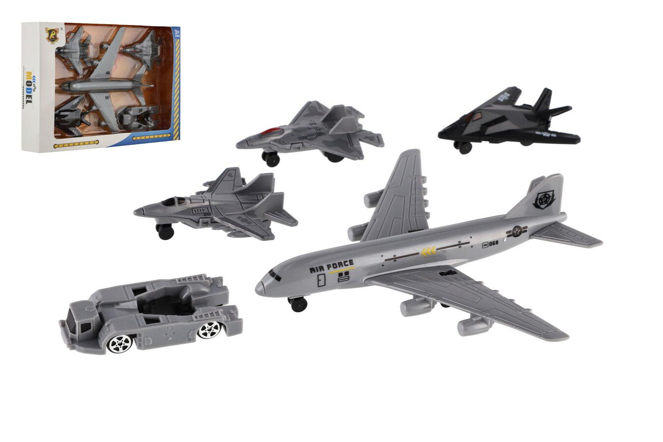 Parádní sada letadel a doprovodných vozidel nadchne všechny malé piloty i milovníky letecké techniky. Set obsahuje velké dopravní letadlo a další tematická vozidla či stíhačky (dle varianty), které zajistí spoustu zábavy při hře na letiště nebo vojenskou základnu.