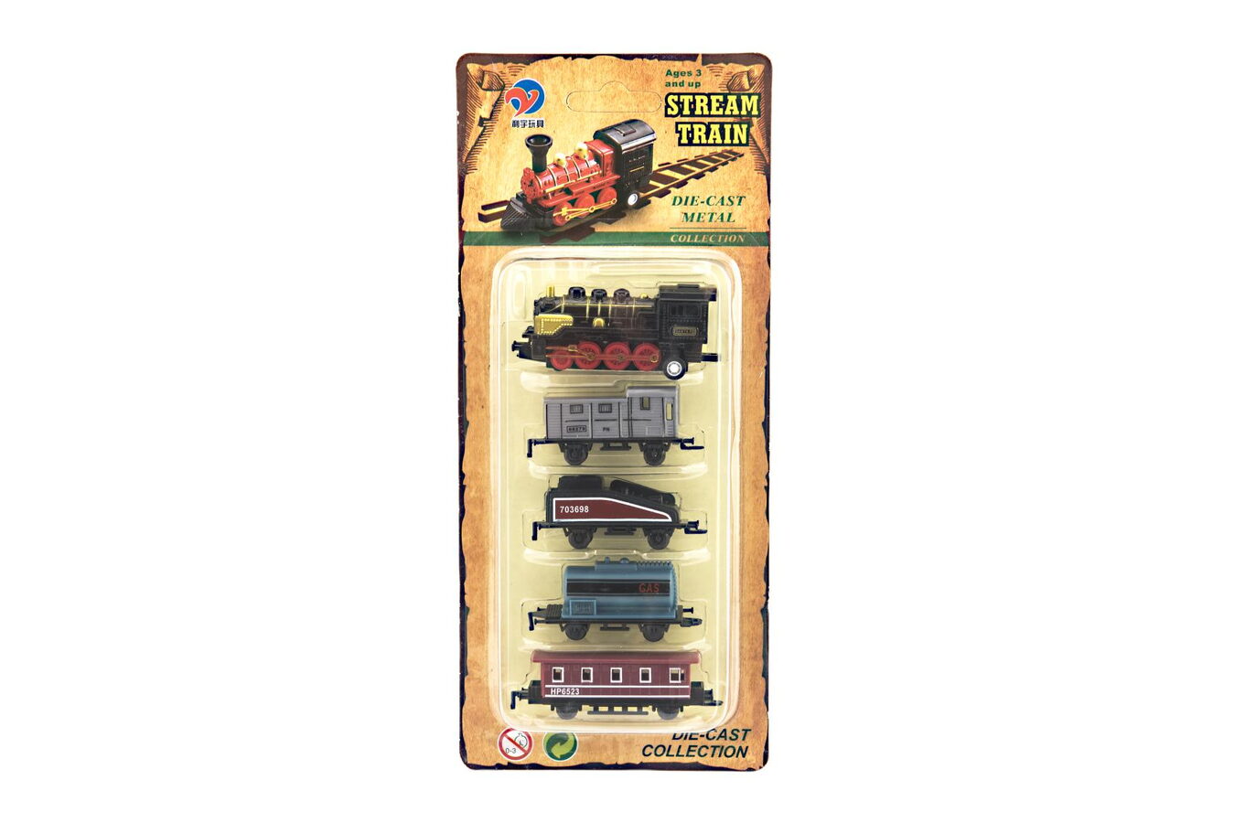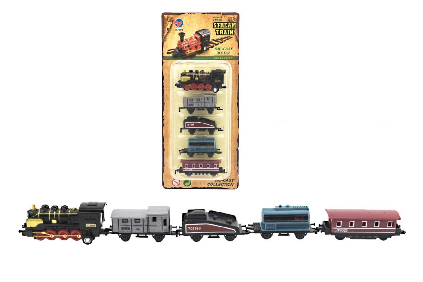 Teddies Sada lokomotiva a vagónky 5ks kov 8cm asst 4 druhy na kartě
