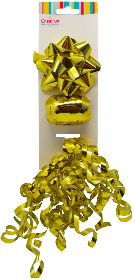 Dárková sada metalická zlatá, 3 ks (mašle 9 cm, stuha 10 m, mašlička 6 mm)