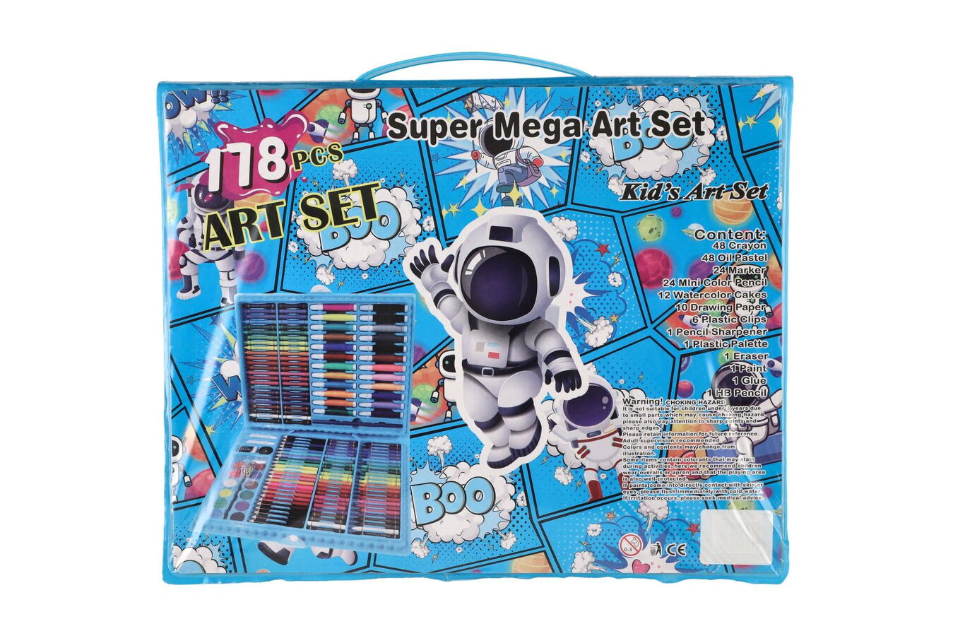 Připravte se na kreativní cestu do vesmíru! Tato kreativní sada s vesmírným motivem nadchne všechny malé výtvarníky. Obsahuje 178 výtvarných potřeb přehledně uspořádaných v lehkém plastovém kufříku, který je ideální na doma, do školy i na cesty. Díky bohatému obsahu mohou děti kreslit, malovat a tvořit bez omezení.