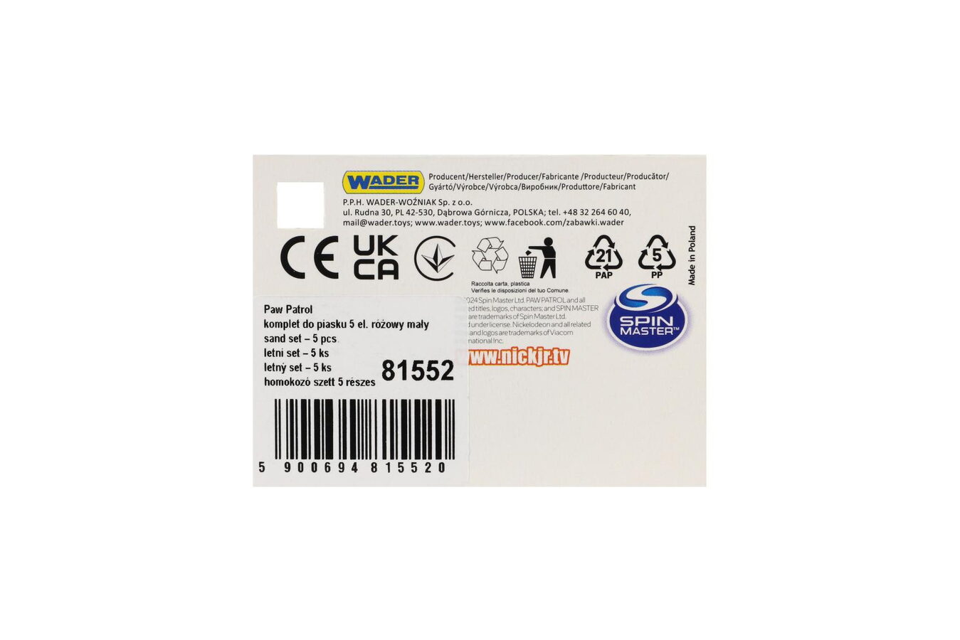 Sada na písek 5ks plast Paw Patrol/Tlapková patrola růžová v síťce 12x22x12cm 12m+ Wader