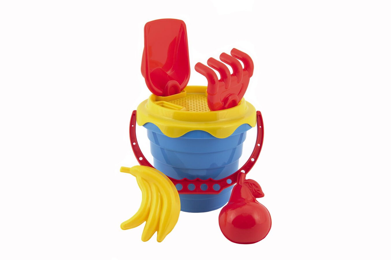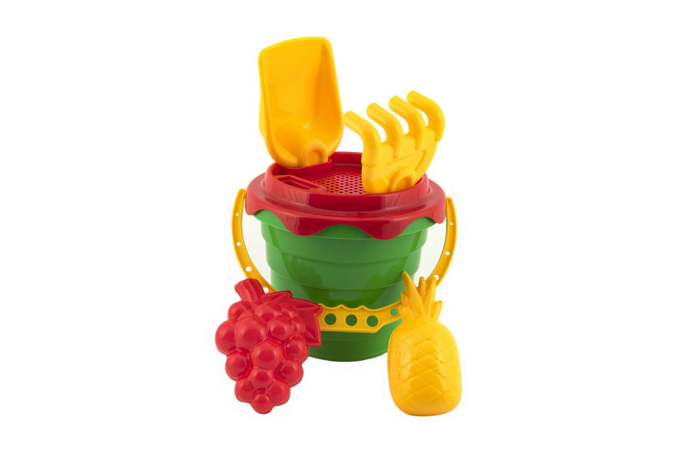 Hračky na písek využije na dovolené u moře, na dětském hřišti nebo na zahradě celá rodina. Sada obsahuje kbelík velikosti cca 12 cm, sítko, lopatku, hrabičky a 2 bábovičky.