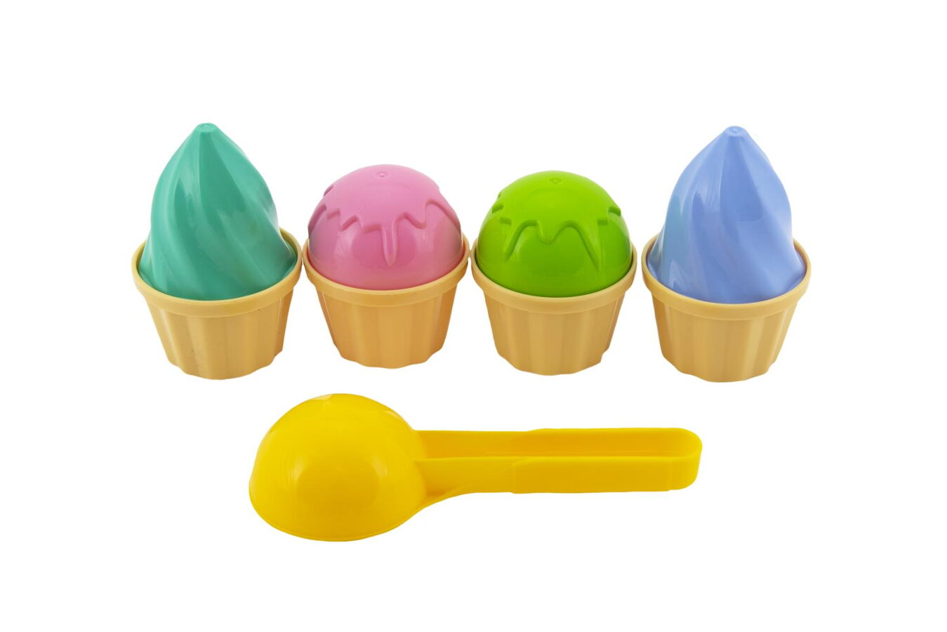 Vybavte děti na pískoviště formičkami v podobě zmrzliny. Sada obsahuje naběračku na zmrzlinu, 4x kornoutek a 4x kopeček zmrzliny. Děti vytvoří nádherné bábovičky díky těmto formičkám.