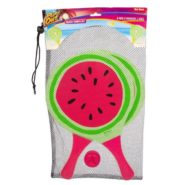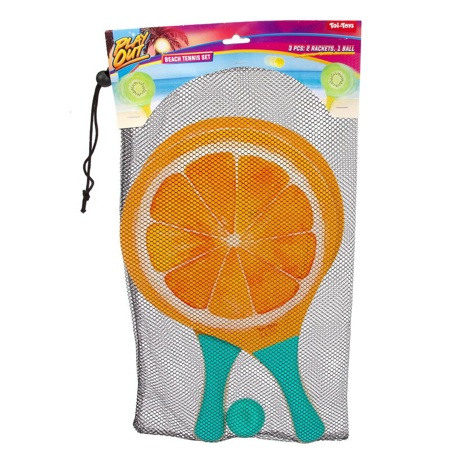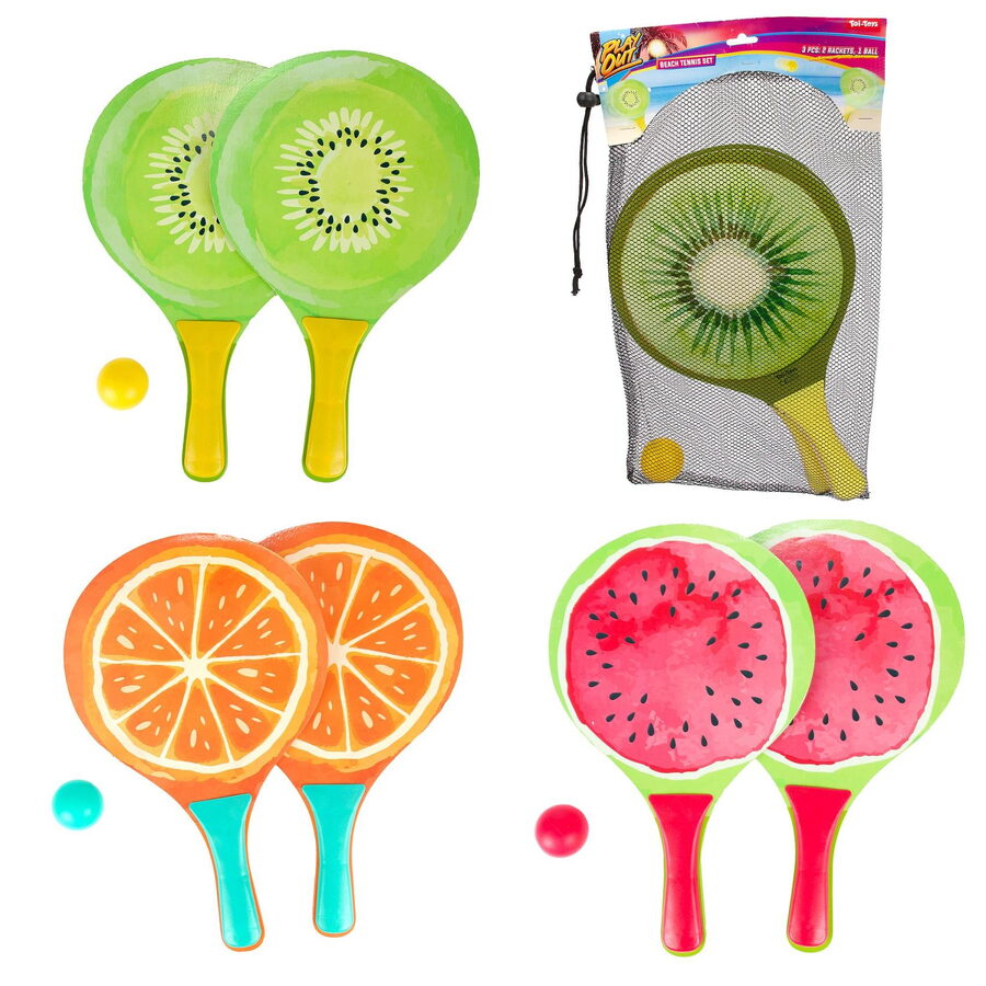 Letní klasika v barevném ovocném stylu! Tato sada na plážový tenis je skvělou volbou pro aktivní zábavu u moře, na zahradě i na hřišti. Veselé designy a pevné dřevěné pálky zaručí hodiny zábavy pro děti i dospělé.