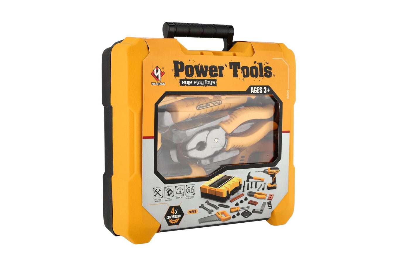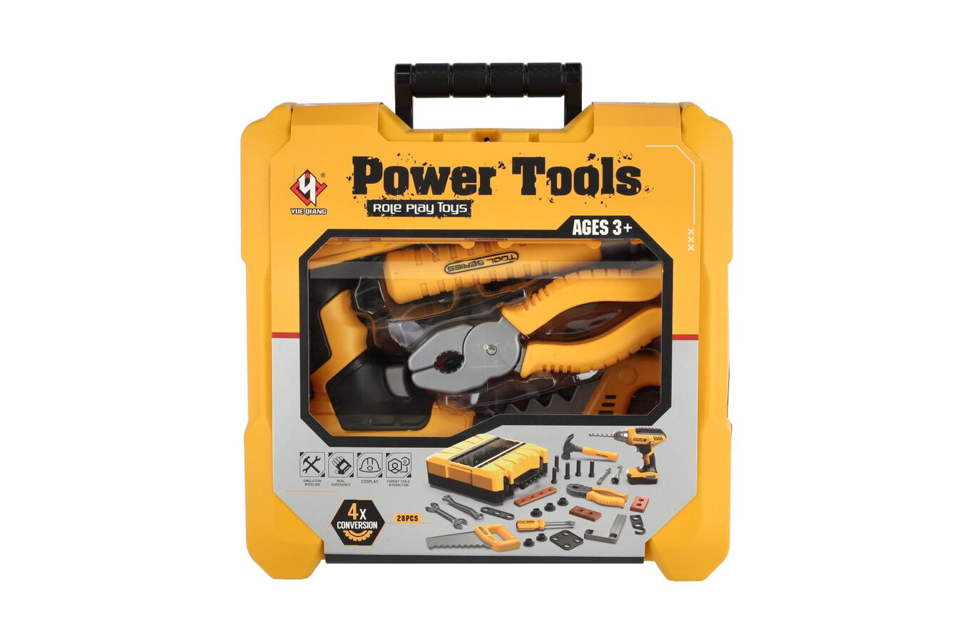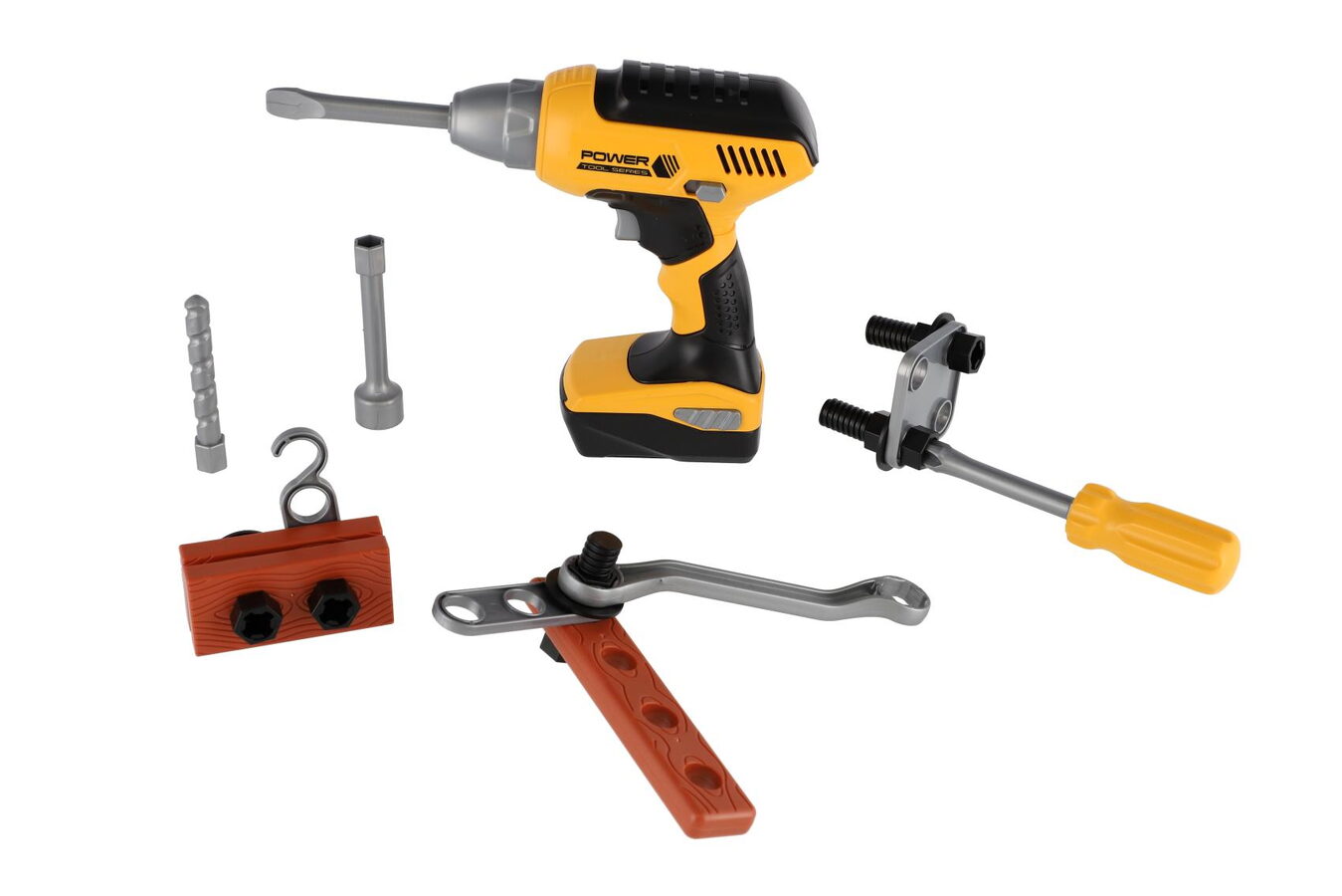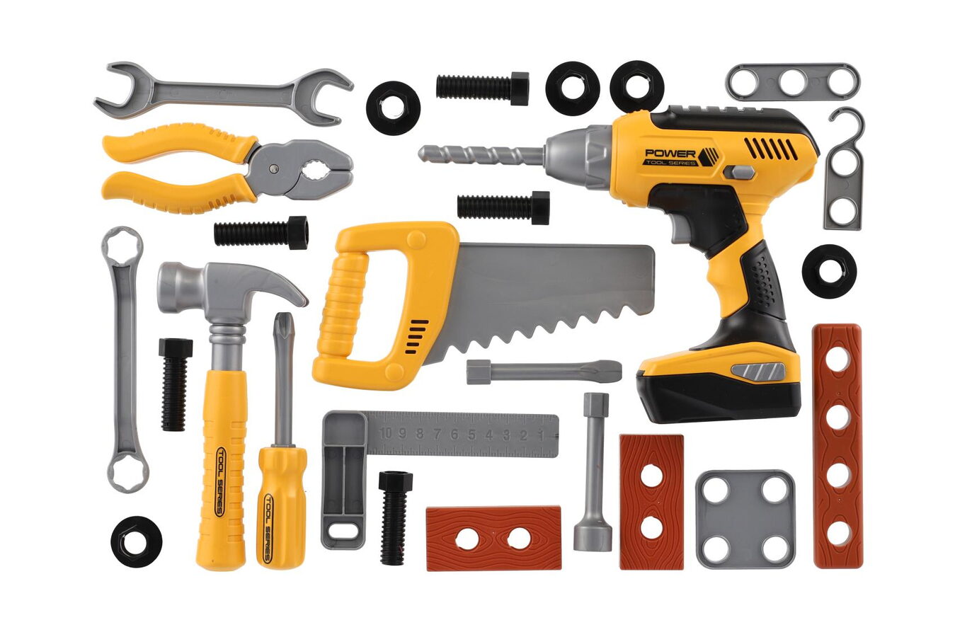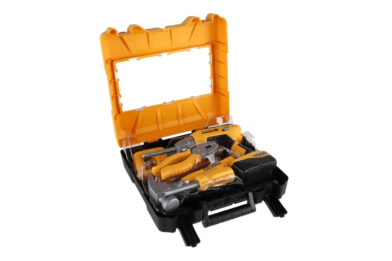 Tato dětská sada nářadí s vrtačkou je ideálním dárkem pro malé kutily, kteří rádi napodobují práci dospělých. Sada obsahuje vše potřebné pro malé opraváře v praktickém plastovém kufříku. Hračka je vybavena zvukovými efekty a napájena packem na baterie (3xAAA, nejsou součástí balení), kompatibilní s dalšími nástroji stejné značky.