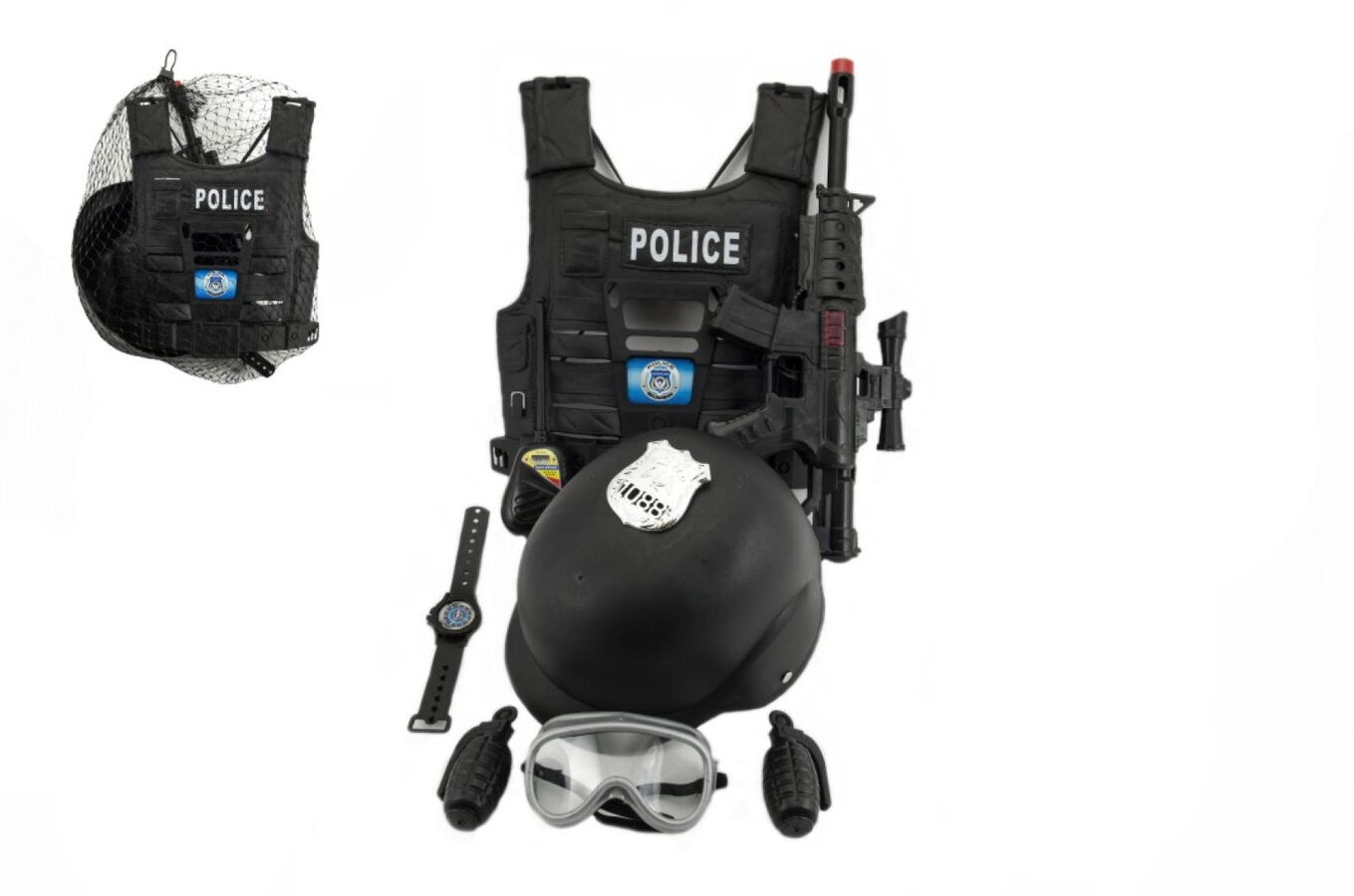 Sada policejní pistole a přilba s doplňky plast 38cm v síťce