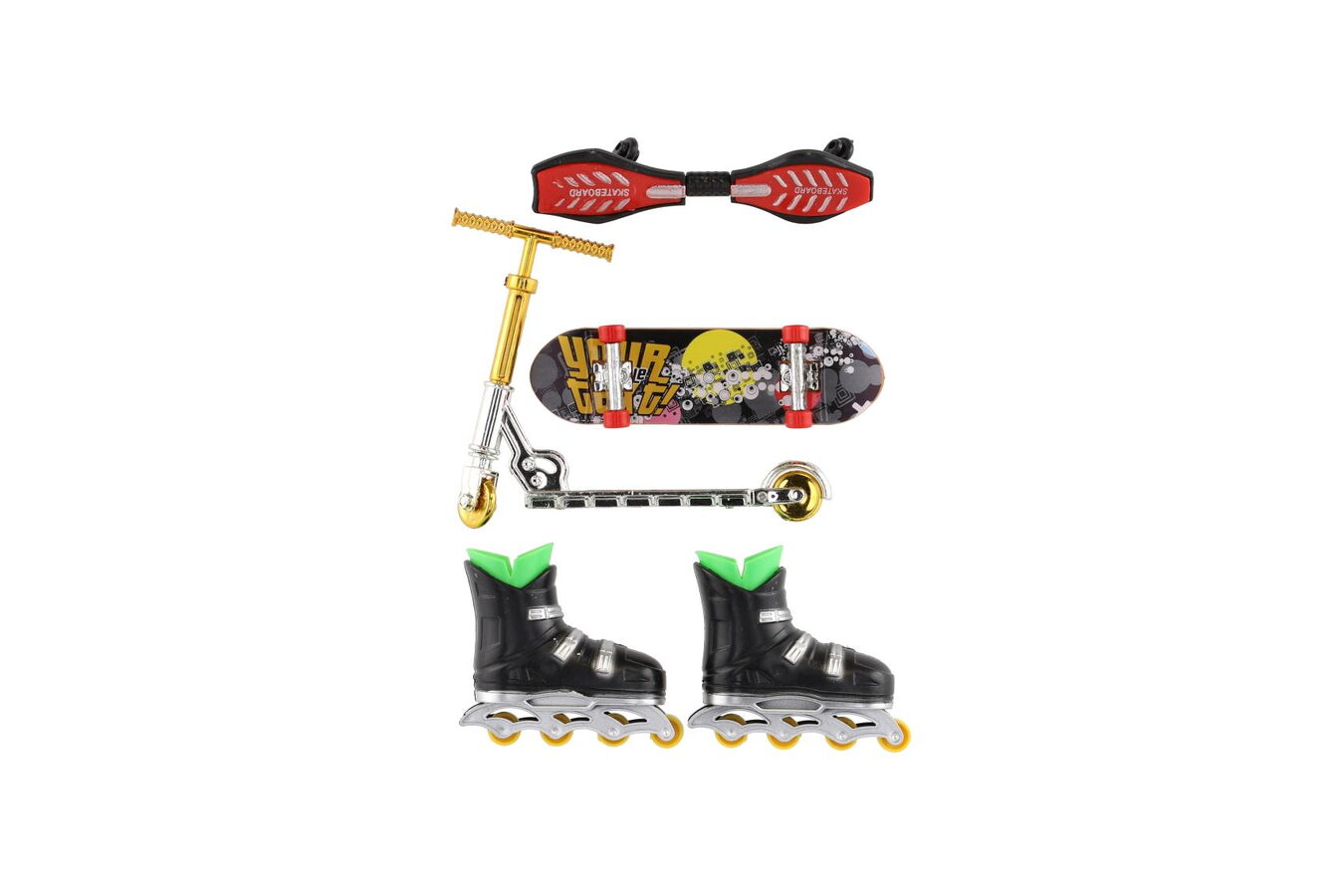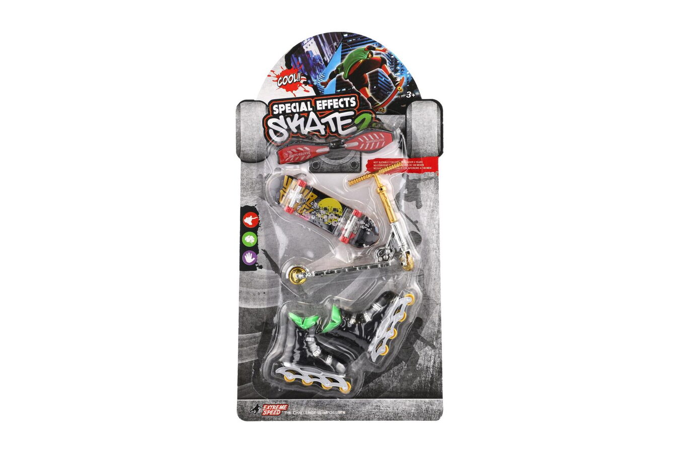 Sada skateboard, waveboard, brusle, koloběžka prstová plast mix druhů na kartě 16x30cm