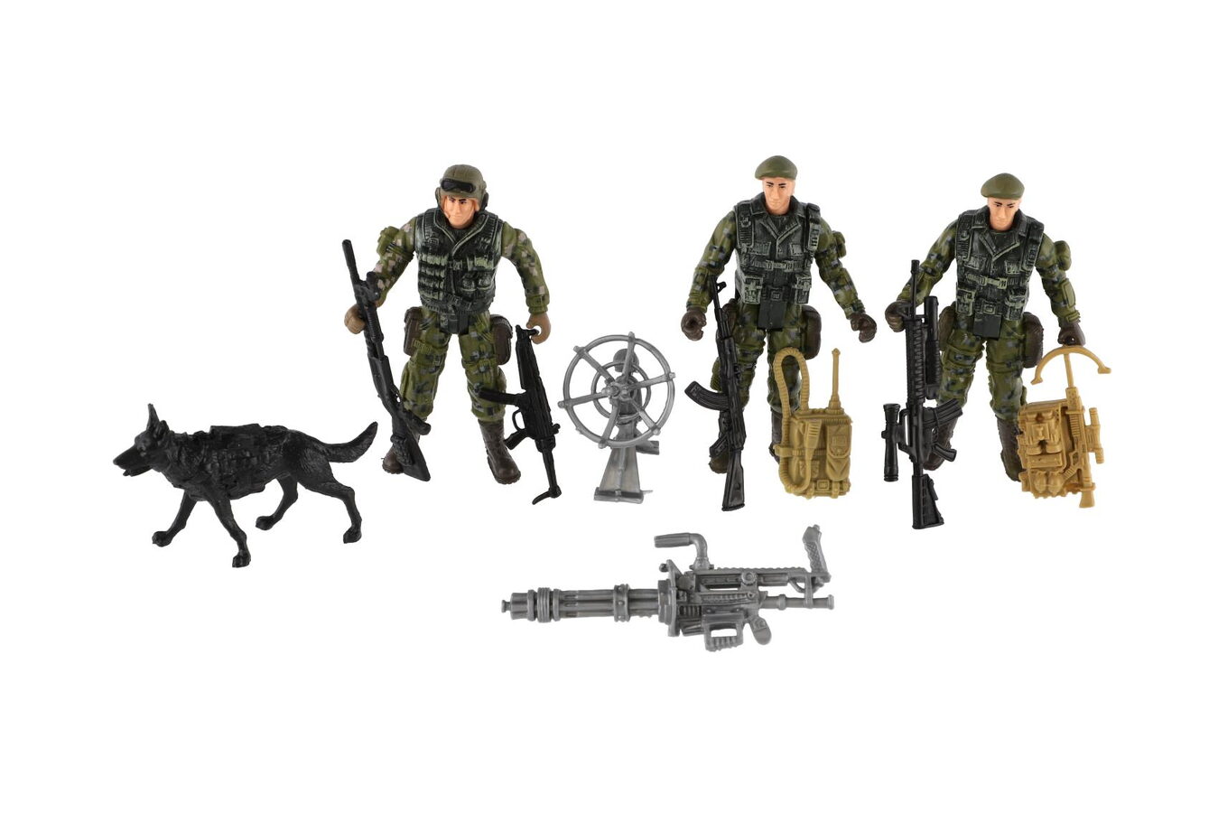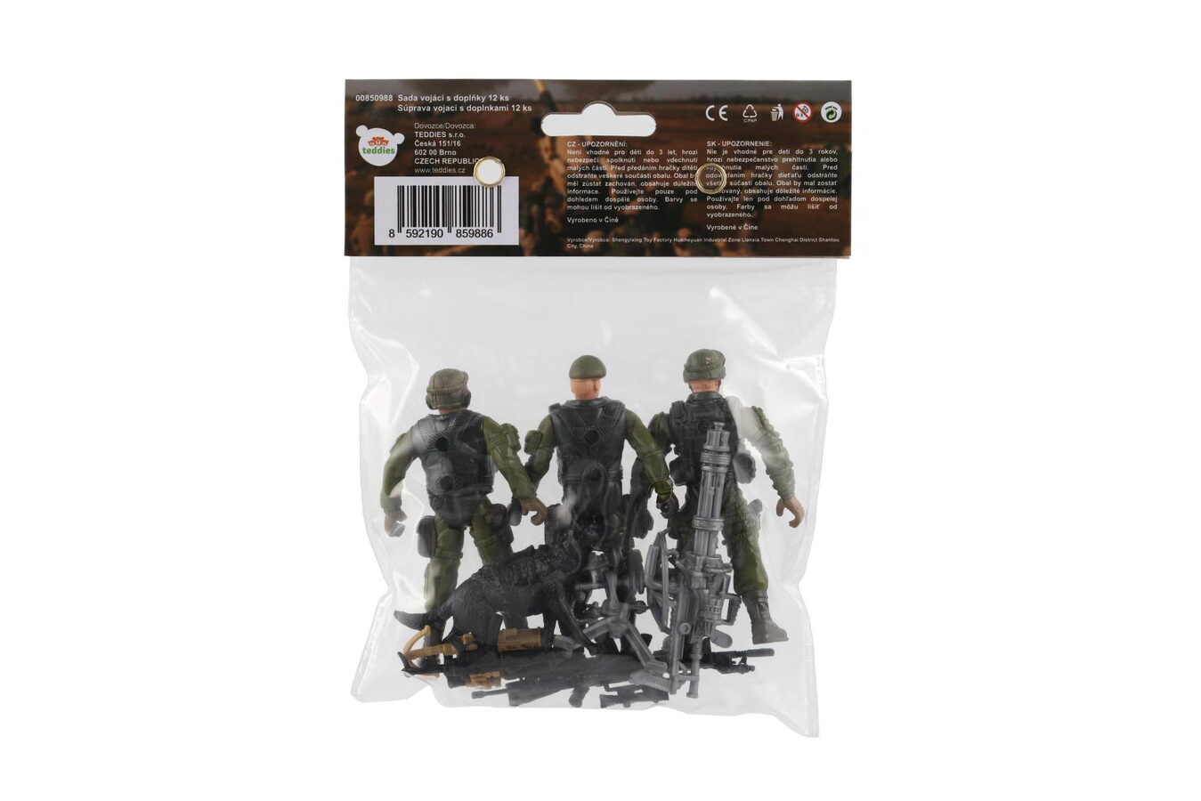 Sada vojáci se psem s doplňky 12ks plast v sáčku 17x20x3cm