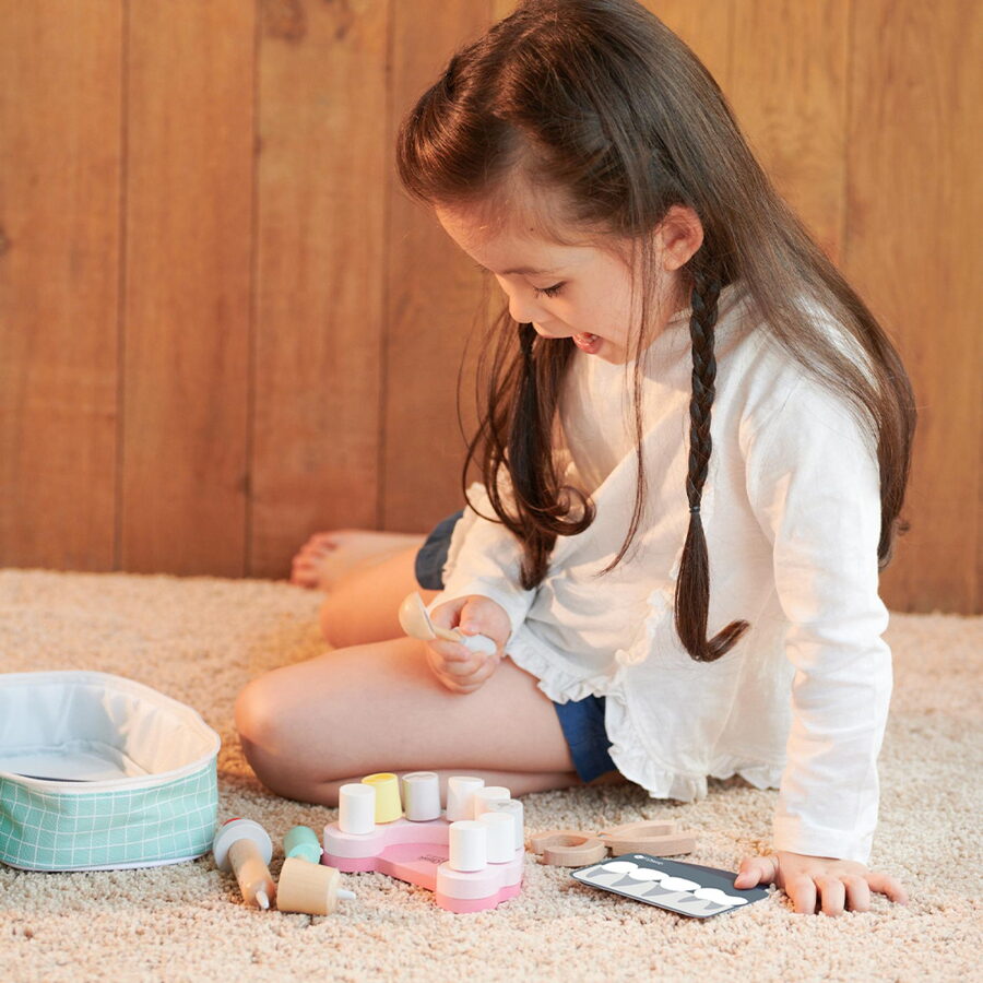 Sada zubař 18ks dřevo v látkové tašce v papírovém obalu 22x7x15cm