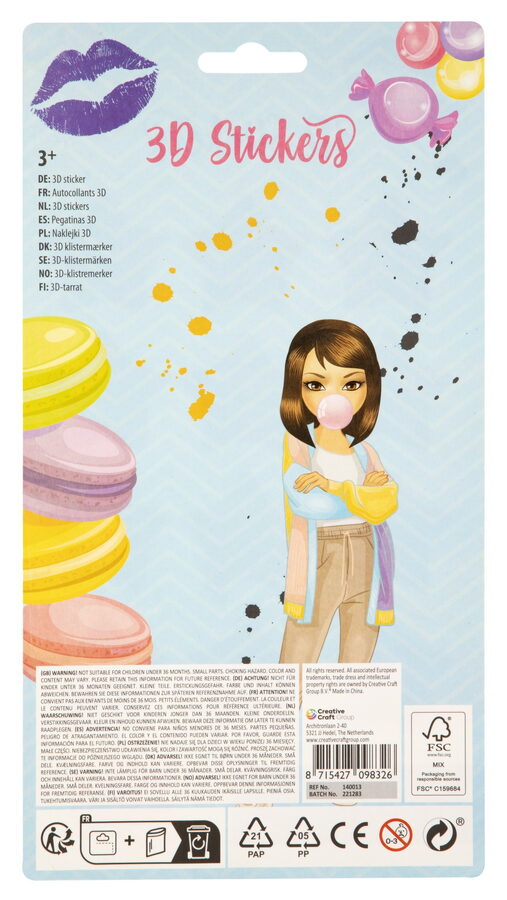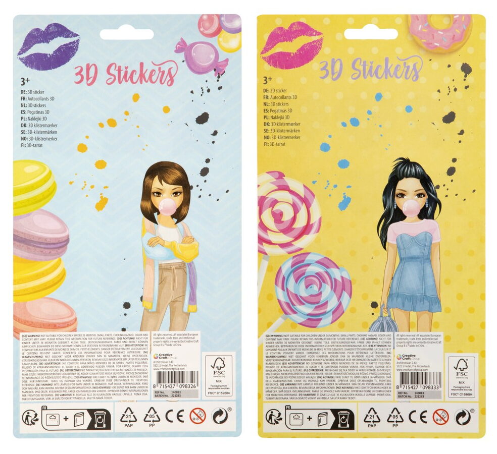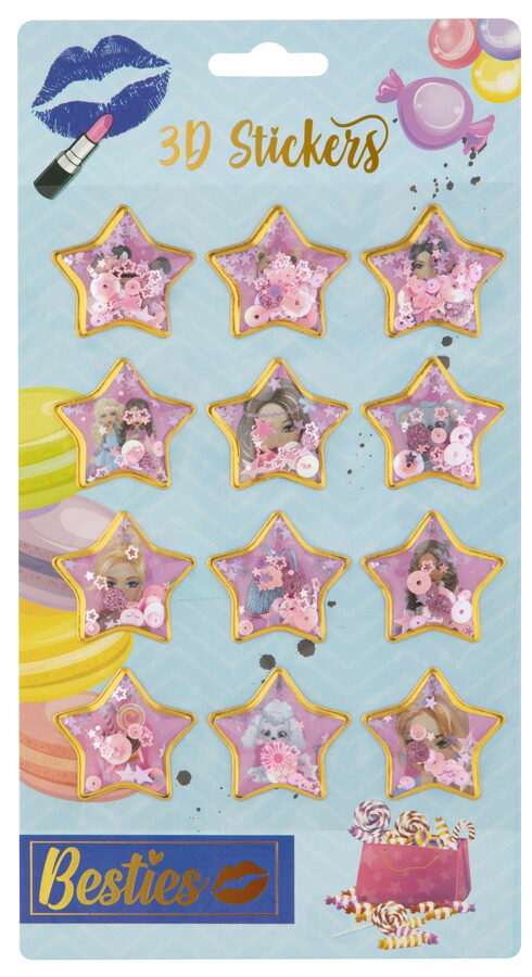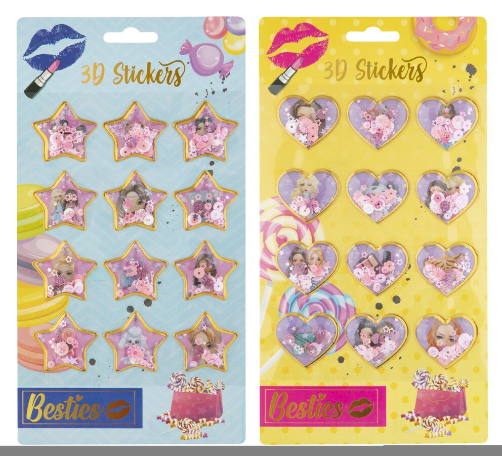 Samolepky 3D s třpytkami Besties 12 ks. Dva různé druhy.