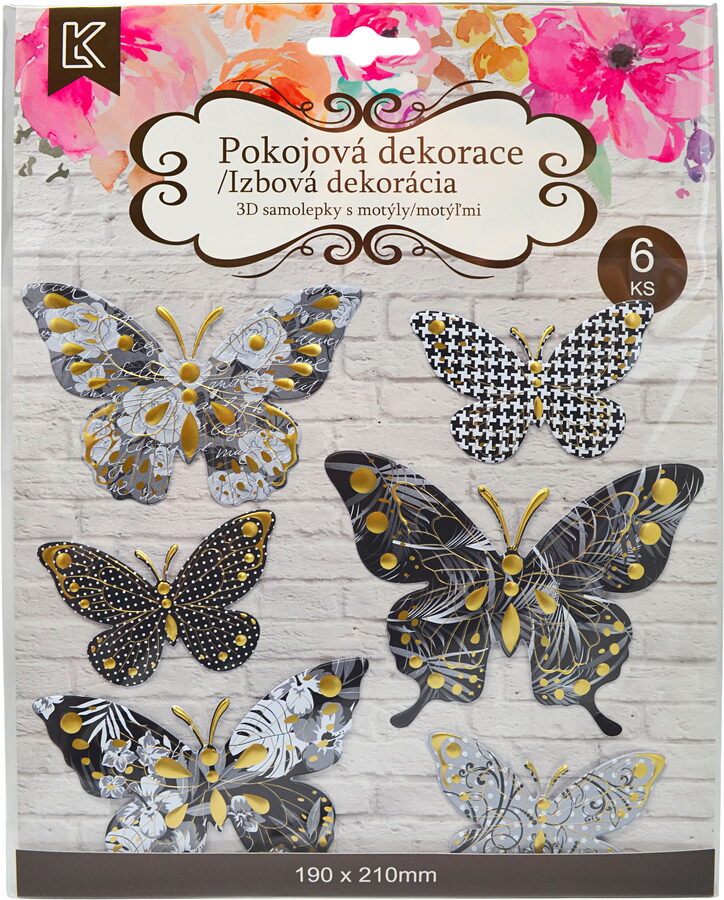 Samolepky na zeď s 3D efektem Motýl v.2 6 ks