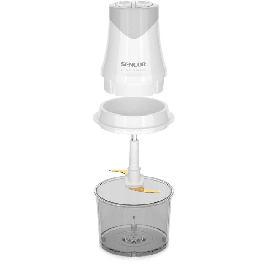Plastová nádoba o objemu 1 l a 2 nože pro všechny druhy sekání potravin;