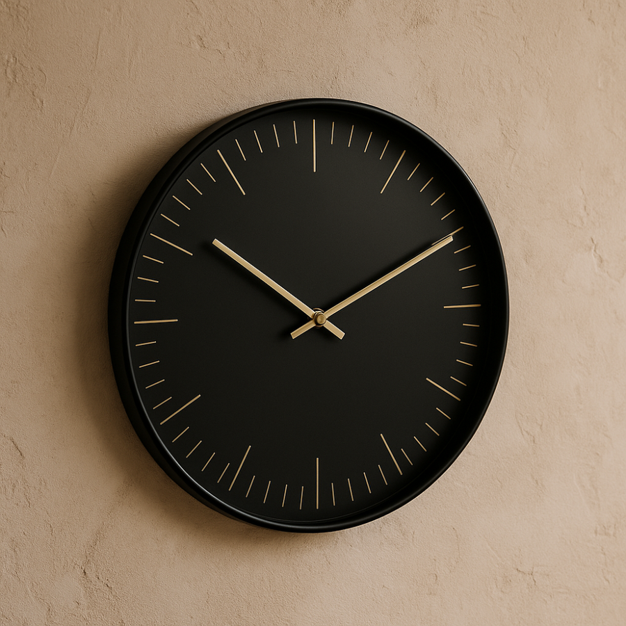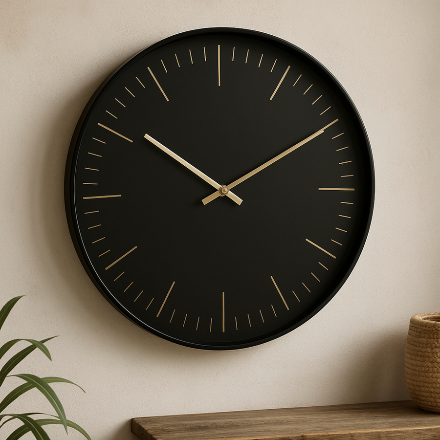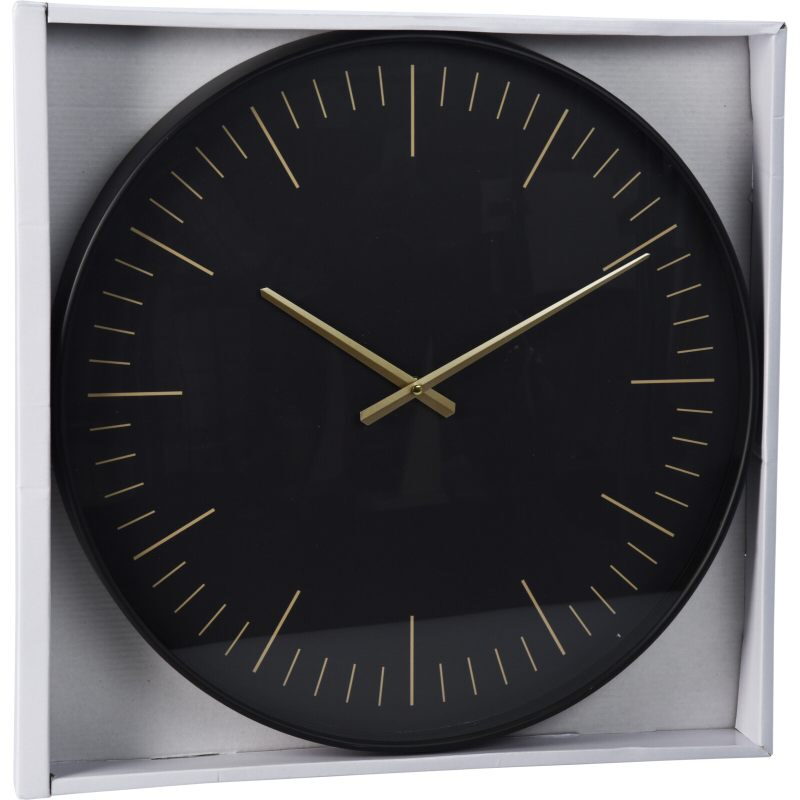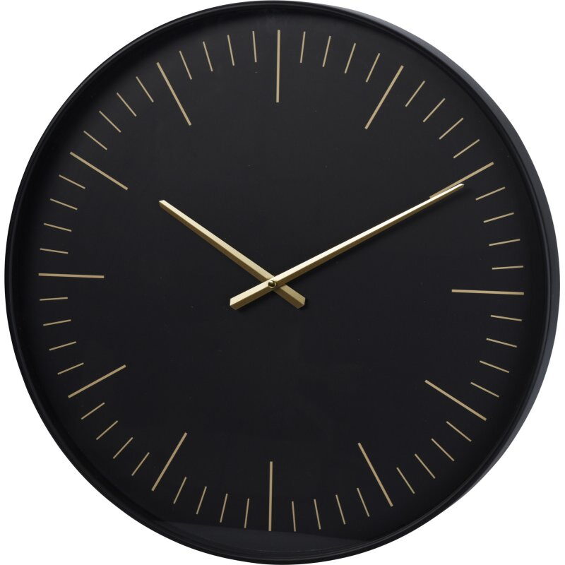 Elegantní nástěnné hodiny v moderním designu s černým ciferníkem a zlatými liniemi a ručičkami. Skvěle doplní interiér a zároveň jsou praktickým pomocníkem při sledování času.