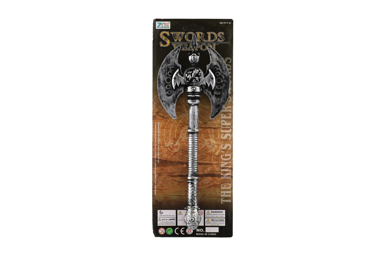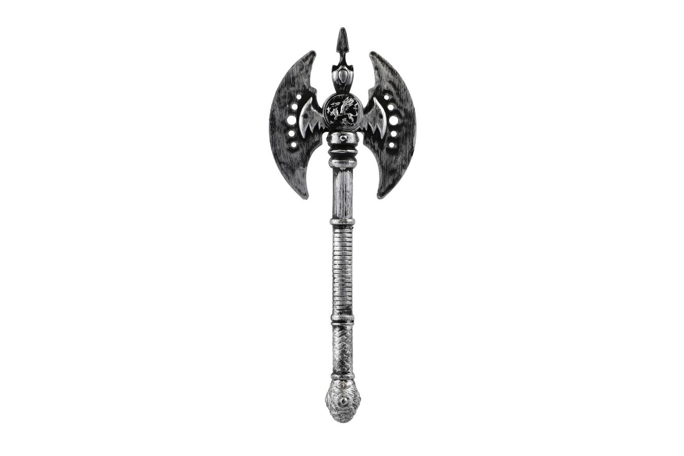 Oboustranná válečnická sekera může být vhodným doplňkem k historickým kostýmům bojovníků, kata, ale i halloweenským převlekům. Velikost sekery je 30 cm.