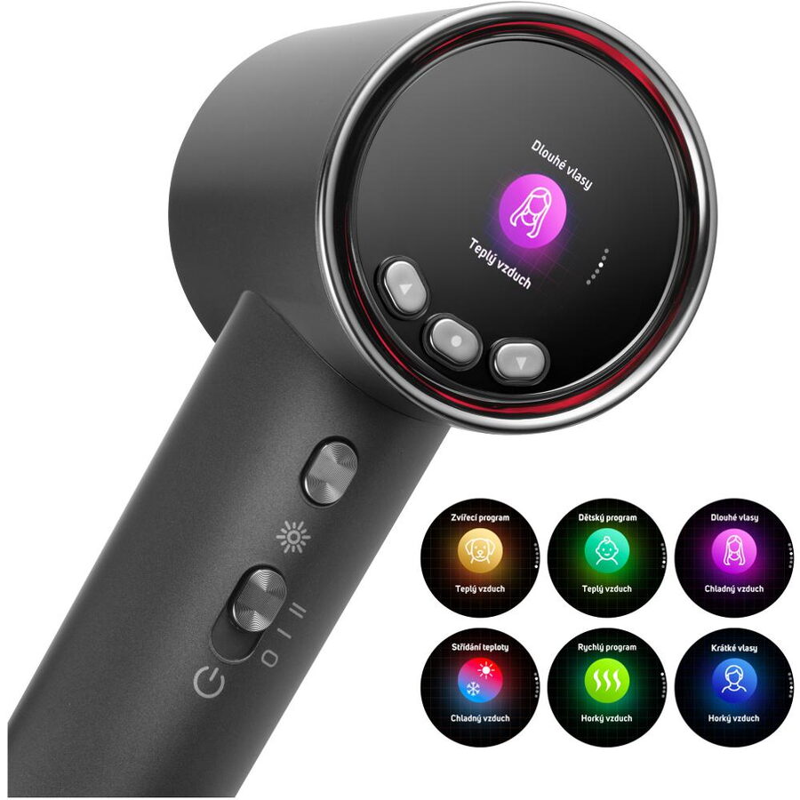 5 chytrých režimů: Rychlý program, Střídání teploty, Dlouhé vlasy, Krátké vlasy, Dětský program, Zvířecí program