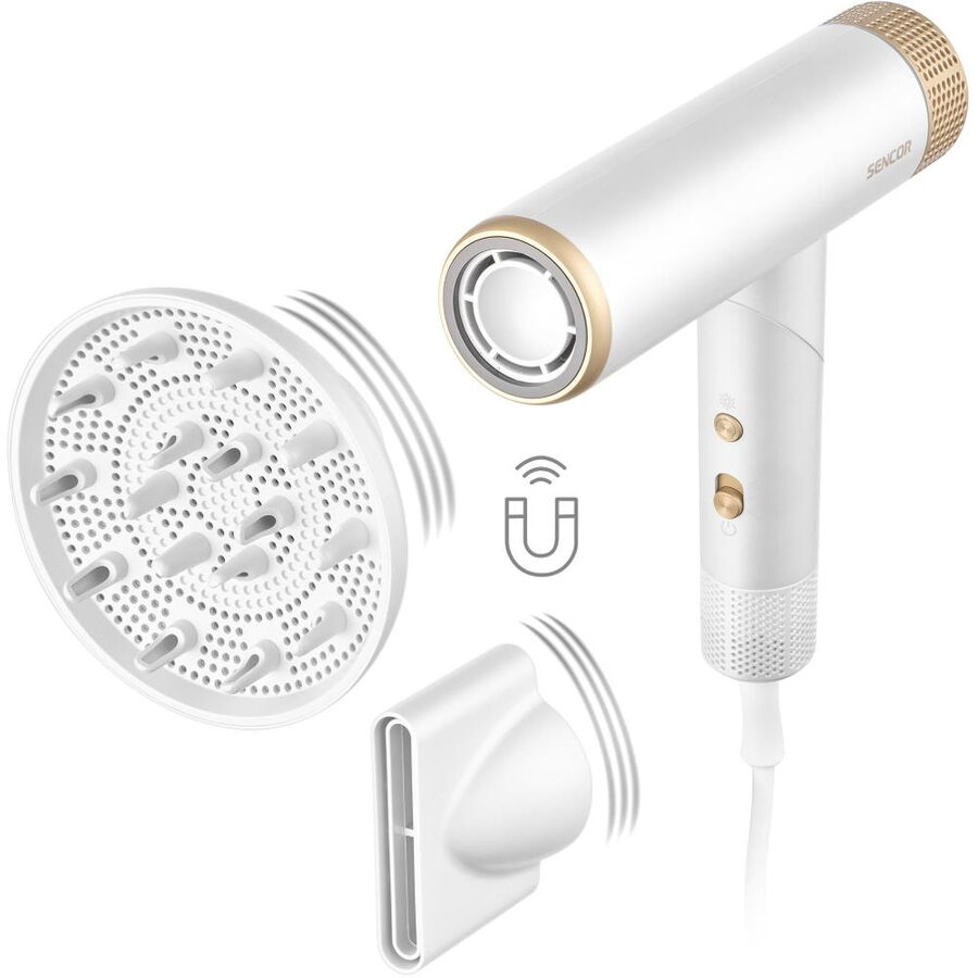 Obsah balení: 1 vysoušeč vlasů, 1 magnetická hubice, 1 magnetický difuzér