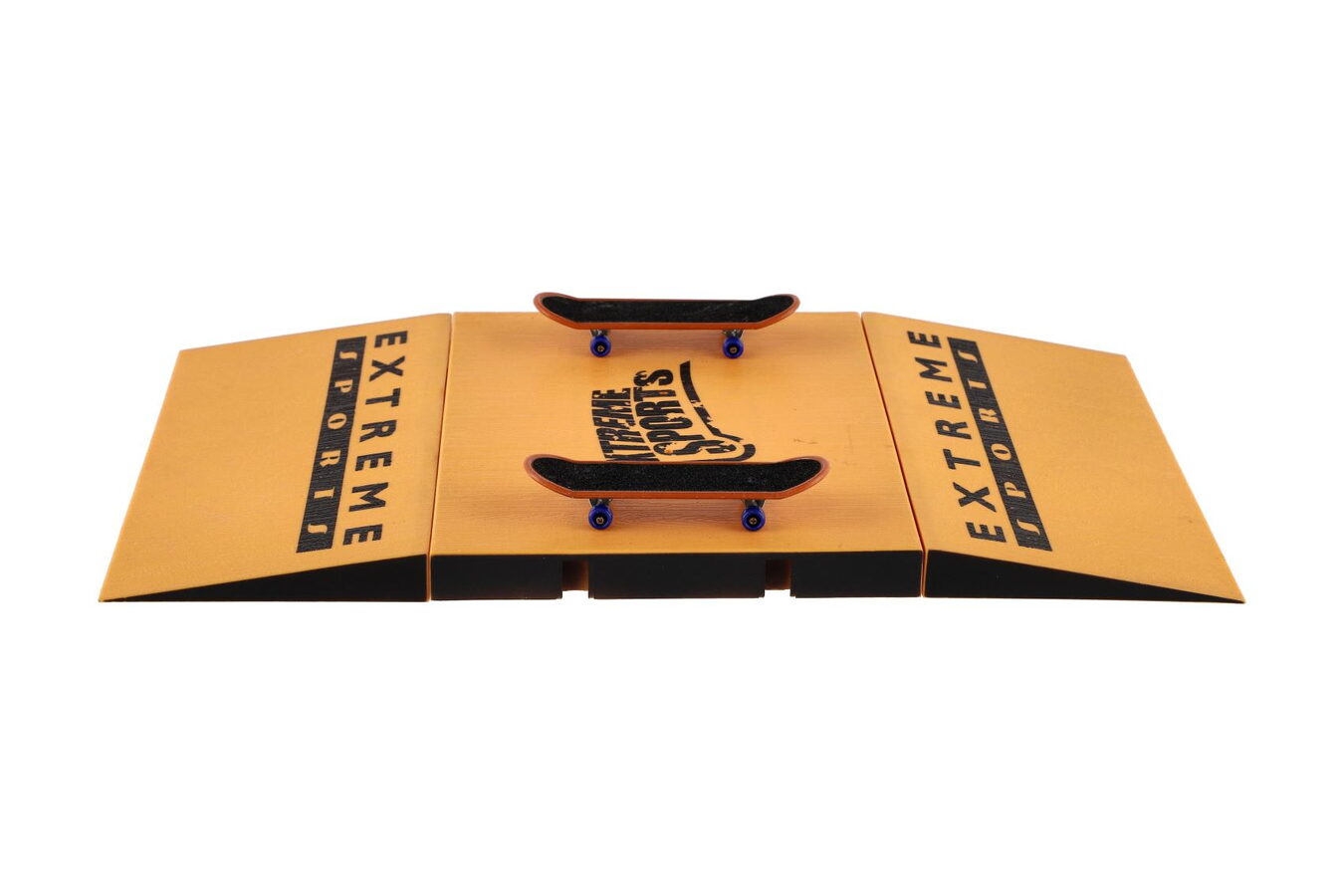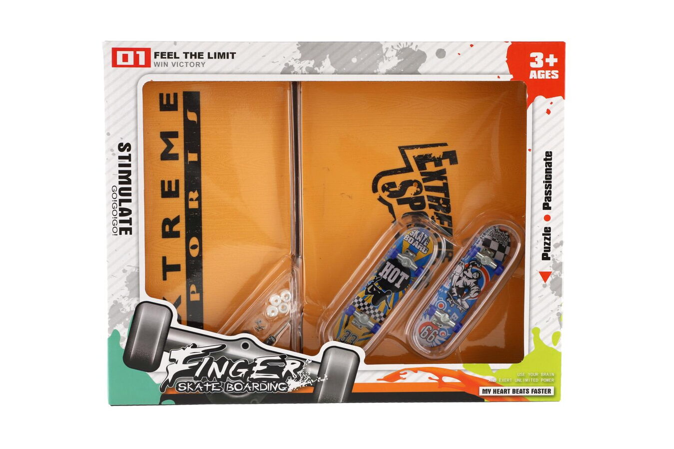 Skateboard prstový šroubovací 2ks plast 10cm s rampou s doplňky v krabičce 30x24x6cm