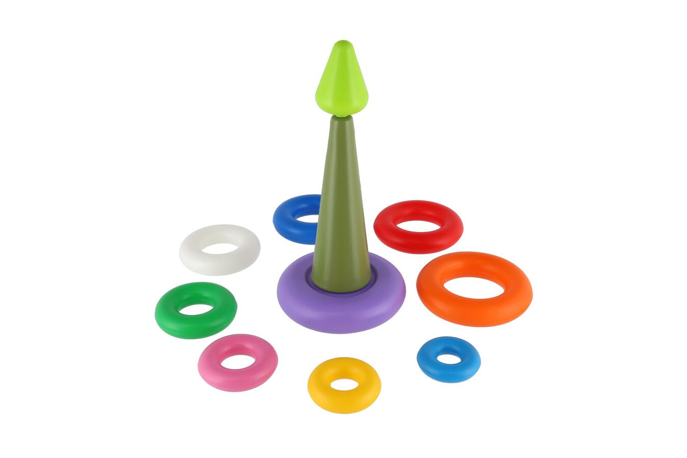 Pestrobarevná pyramida je perfektní hračkou pro ty nejmenší. Osm různě barevných kroužků se na sebe skládají do tvaru pyramidy. Rozvíjí vizuální stimulaci, motorické dovednosti a koordinaci rukou.
