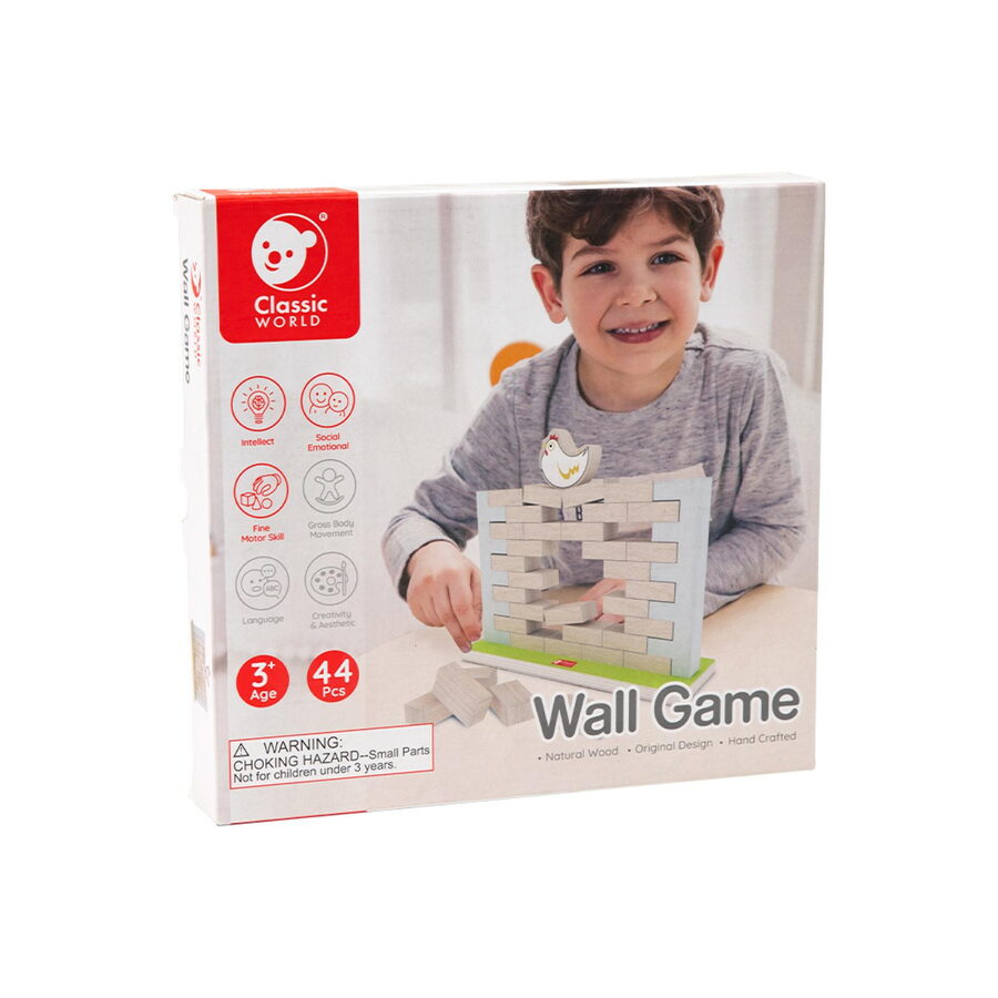 Skvělá dřevěná hra pro celou rodinu, jejíž hlavní předností jsou jednoduchá pravidla, logické myšlení a zábava pro všechny věkové kategorie. Postavte zeď ze speciálně připravených bloků. Umístěte slepici na vrchol a pak cihly jednu po druhé vytáhněte ze zdi. Když se zeď zhroutí, hra končí. Při hře se vaše batole naučí soustředění, strategii a řešení problémů a zlepší si koordinaci rukou a očí.