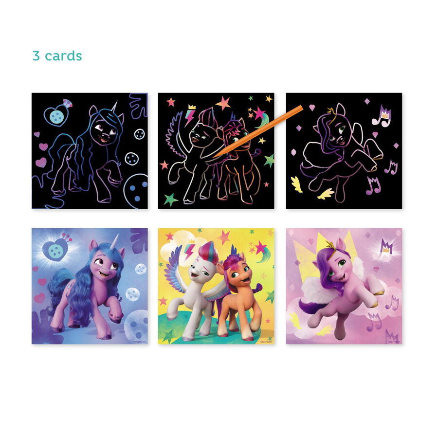 Škrabací obrázek, kde perem šeškrábete dle linek kresbu s motivem My little pony. Dítě nakonec získá obrázek, kterým si může vyzdobit pokojíček, přičemž samo získá mnoho potřebných dovedností, jako je pozornost, trpělivost, opatrnost a přispěje k rozvoji tvořivého talentu a motoriky.