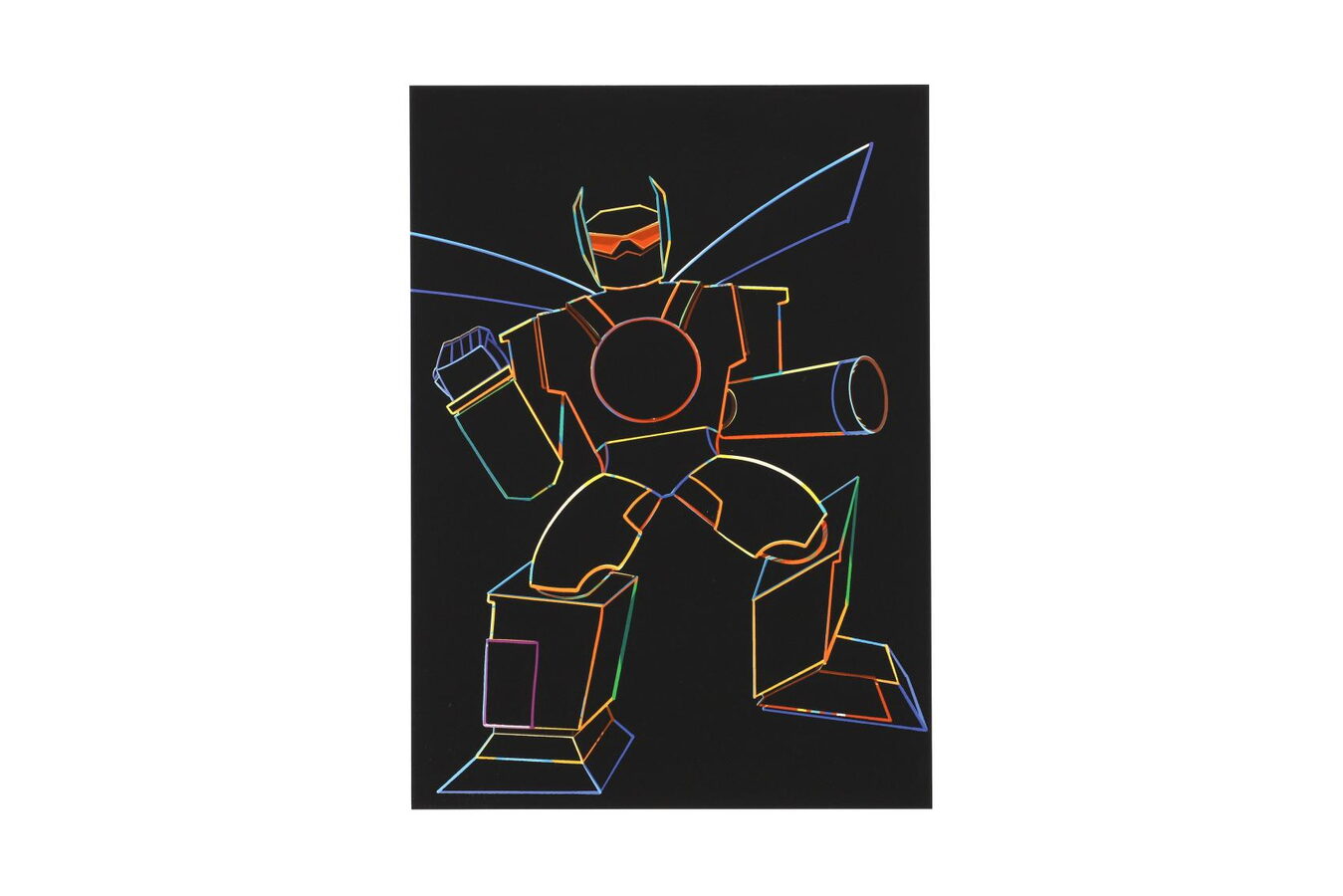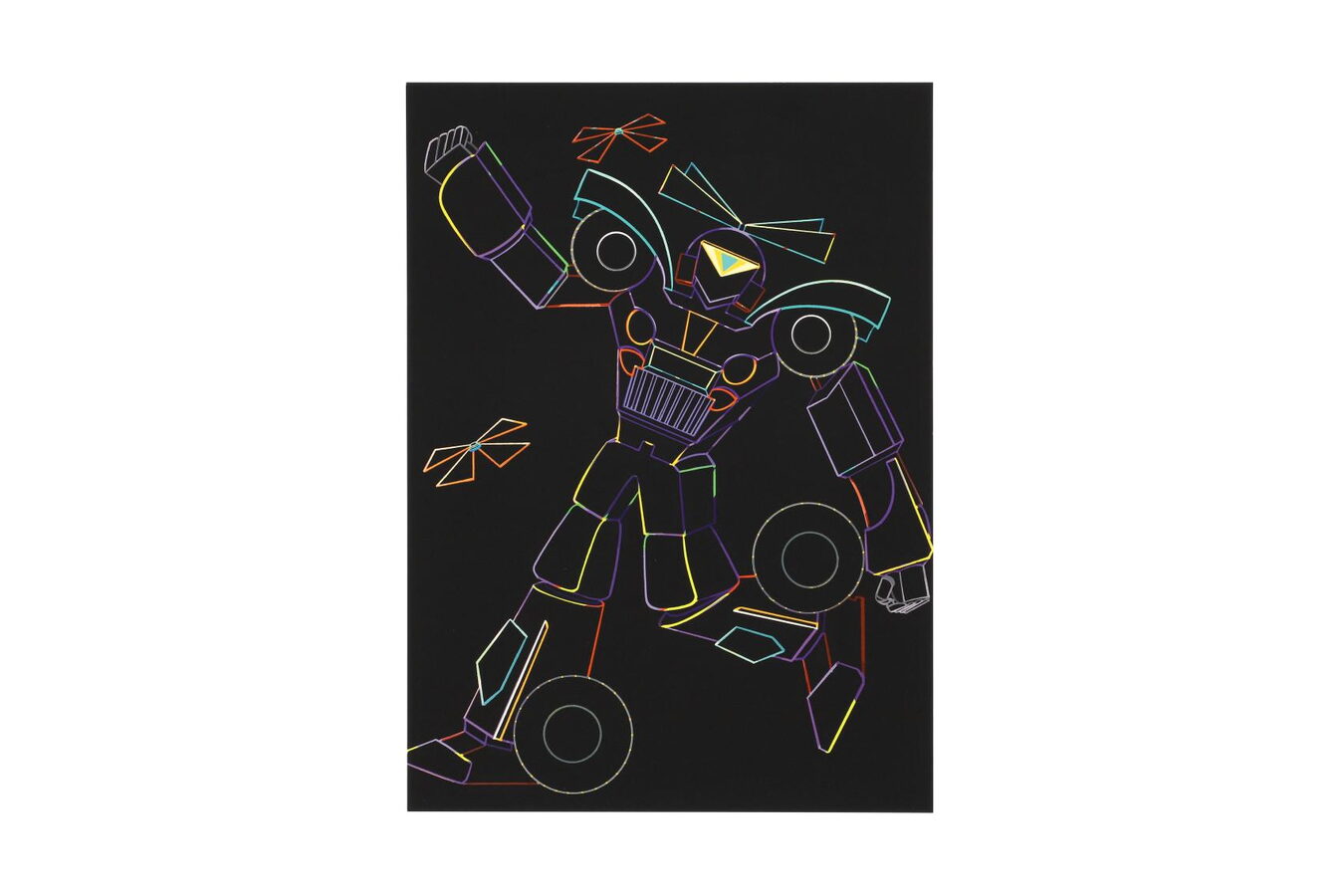 Škrabací obrázek, kde perem šeškrábete dle vlastní fantazie robota. Doškrabejte mu např. uniformu, atp. Dítě nakonec získá obrázek, kterým si může vyzdobit pokojíček, přičemž samo získá mnoho potřebných dovedností, jako je pozornost, trpělivost, opatrnost a přispěje k rozvoji tvořivého talentu a motoriky. Sada obsahuje 4 obrázky formátu A4.