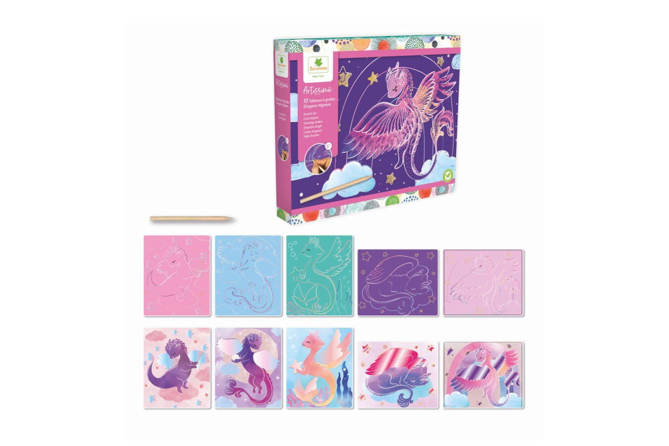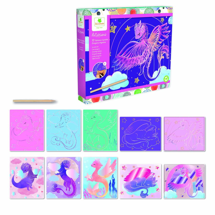 Škrabací obrázek Dráčci 10ks 20x24cm v krabičce 26,5x22x4cm