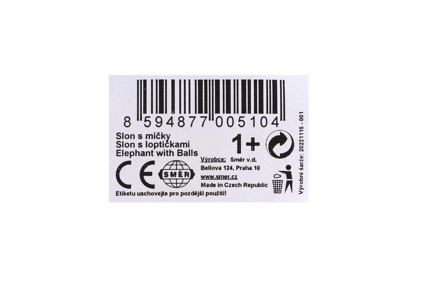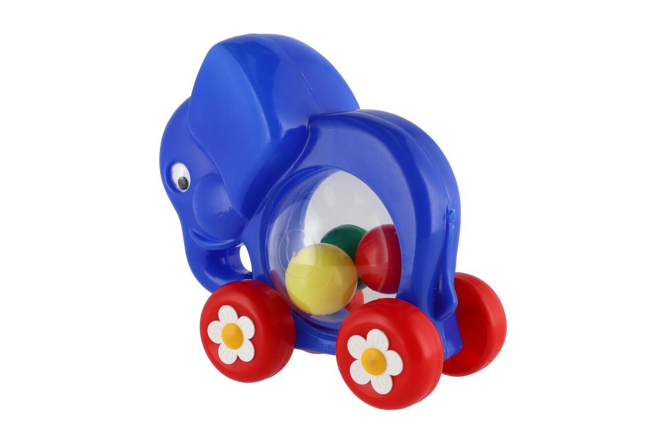 Barevný tahací slon pro nejmenší děti, s míčky z plastu, které se pohybují, když dítě hračku táhne. Nostalgická dětská hračka mnoha generací. Provázek není součástí.