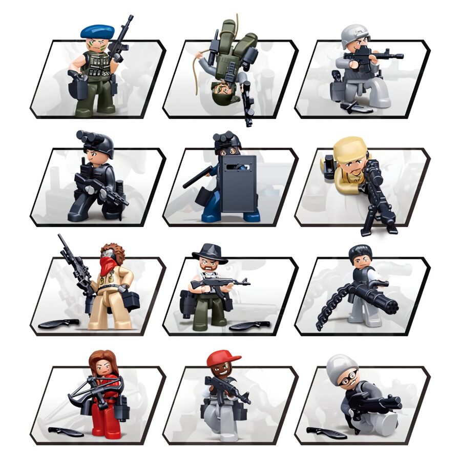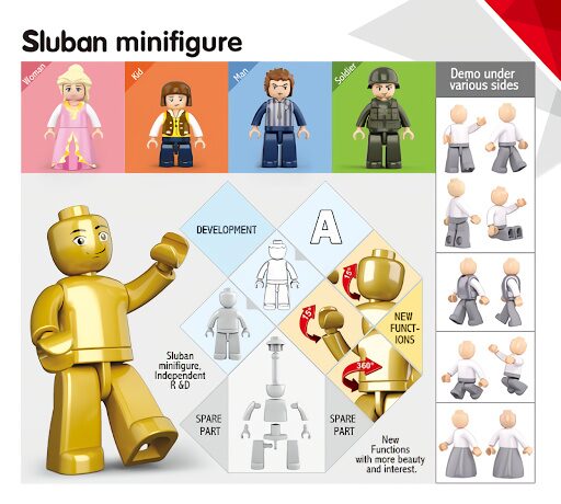 Série figurek pro inovativní stavebnice Sluban, které je možno kombinovat s podobnými stavebnicemi mnoha dalších významných výrobců. Jsou vyráběny z kvalitního, nezávadného a odolného ABS plastu. Každá figurka je vybavena podstavcem a příslušenstvím, balena v pestře potištěné papírové krabičce. Hlavní vlastnosti:12 variantvčetně podstavce a příslušenstvíinovativní figurky s otáčivými i výkyvnými částmi tělkompatibilní se stavebnicemi dalších výrobců