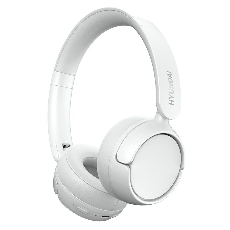 Bezdrátová skládací sluchátka Hyundai s výdrží až 65 hodin, Bluetooth 6.0, ideální na hudbu i hovory každý den, trendy bílá s titanovým nádechem.