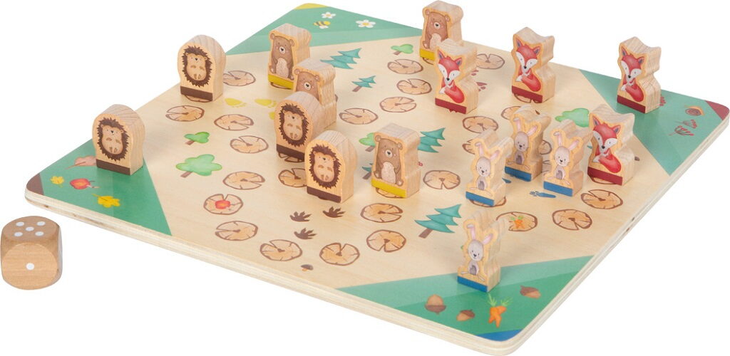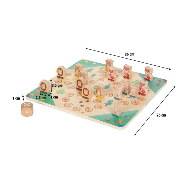 Hoďte kostkou, hýbejte figurkami a užijte si spoustu zábavy se zvířaty!Tato propracovaná hra Člověče, nezlob se přináší oblíbenou klasiku v okouzlující zvířecí podobě. Medvěd, liška, ježek nebo králík, tyto láskyplně navržené dřevěné figurky zvou děti ke hře, při které se hravou formou učí počítat a zároveň rozvíjejí jemnou motoriku. V této verzi hry mohou proti sobě soutěžit až čtyři hráči a posouvat své figurky po kvalitně potištěné herní desce s motivy divokých zvířat. Součástí hry je extra velká dřevěná kostka, ideální pro malé dětské ručičky, která podporuje rané počítací dovednosti. Robustní dřevěné figurky se snadno uchopují, jsou odolné a navržené s ohledem na potřeby dětí. Díky modernímu designu s viditelnou kresbou dřeva a vysoké kvalitě zpracování se tato hra stane oblíbenou součástí v každém dětském pokoji a nabídne dlouhé hodiny společné zábavy. Hlavní vlastnosti: Člověče, nezlob se s figurkami ve tvaru zvířatklasická desková hra pro 2 - 4 hráčeextra velká dřevěná kostka - ideální pro malé dětské ručičkyhravě podporuje počítání a jemnou motorikuvyrobeno z robustního dřeva s vysoce kvalitním potiskem a viditelným podílem dřevavhodné pro všechny věkové kategorie - zábava pro celou rodinu