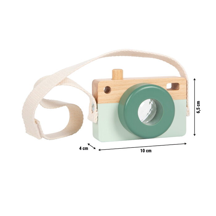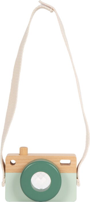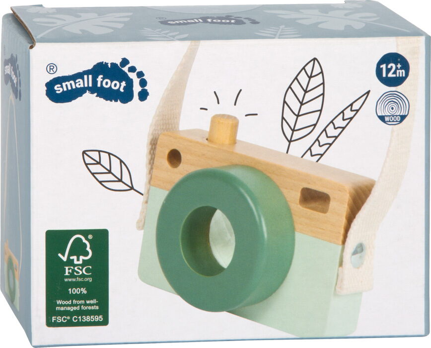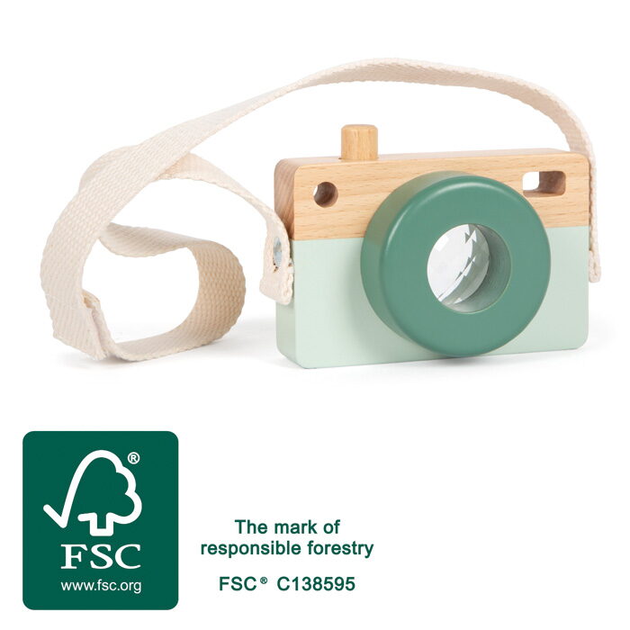 Tento roztomilý dřevěný fotoaparát vyrobený ze 100% FSC® certifikovaného dřeva nadchne všechny malé dobrodruhy! Nabízí kouzelný kaleidoskopický efekt, pohyblivé tlačítko spouště a praktické poutko na nošení. Bez potřeby baterií si děti mohou hrát na malé fotografy, objevovat svět kolem sebe a rozvíjet svou fantazii. Hledáček fotoaparátu tvoří kaleidoskop, díky kterému děti uvidí svět barevně, vzory a zkreslené obrazy budou podněcovat jejich zrakové vnímání i fantazii. Kompaktní dřevěné tělo s moderním vzhledem padne skvěle do dětských ruček. Pohyblivé tlačítko spouště trénuje obratnost a textilní popruh se suchým zipem zajišťuje bezpečné a pohodlné nošení. Ať už si děti hrají na focení doma, nebo zkoumají svět venku, tato hračka podporuje nápodobu dospělých a dává prostor volné hře bez technologií, stačí jen fantazie a chuť objevovat. Hlavní vlastnosti: vyrobeno ze 100% FSC® certifikovaného dřevarozvíjí jemnou motoriku, vnímání tvarů a barevpodporuje představivost a kreativitu Značka a certifikát FSC® (Forest Stewardship Council) zaručuje, že dřevo, ze kterého byl produkt vyroben, nebylo vytěženo nelegálně a pochází z lesů obhospodařovaných šetrným či přírodě blízkým způsobem, ve kterém jsou dodržovány přísné environmentální a sociální požadavky. Značka FSC® na výrobku znamená, že svým nákupem pomáháte chránit lesy a podporujete šetrné, odpovědné či přírodě blízké hospodaření, díky kterému jsou naše lesy stabilnější, zdravější, mají přirozenou druhovou skladbu a lépe odolávají negativním následkům klimatických změn.
