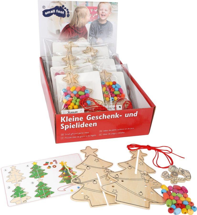 Displej - Vánoční stromeček s korálky 8ks Sada 8 ks. Na tomto vánočním stromku je skvělé to, že ho můžete pomalovat a polepit ozdobami. Je vyroben ze dřeva a lze jej jednoduše složit a rozložit. V balení také naleznete barevné dřevěné kuličky a šňůrku, strom má v sobě připraveny dírky. Německá firma Legler zaměřená na výrobu kvalitních dřevěných hraček od roku 1996. Všechny dřevěné hračky značky small foot mají označení CE a jsou vyráběny dle evropské normy pro bezpečnost hraček EN 71. Použité barvy jsou speciálně vyvinuty pro dřevěné hračky a jsou odolné i proti slinám dětí. Dřevo, které se používá pro tyto hračky, většinou pochází z lesnických společností zapojených do zalesňování. To nabízí všem zákazníkům možnost přispět k zachování přirozeně rostoucích lesů. Dřevěné hračky small foot jsou zářivě barevné produkty, které jsou vyrobeny převážně z přírodních surovin - dřeva. Dětem dělají radost od útlého věku, rozvíjí jejich hmatové a smyslové dovednosti. Cílem značky small foot je podporovat duševní a fyzický vývoj dětí.