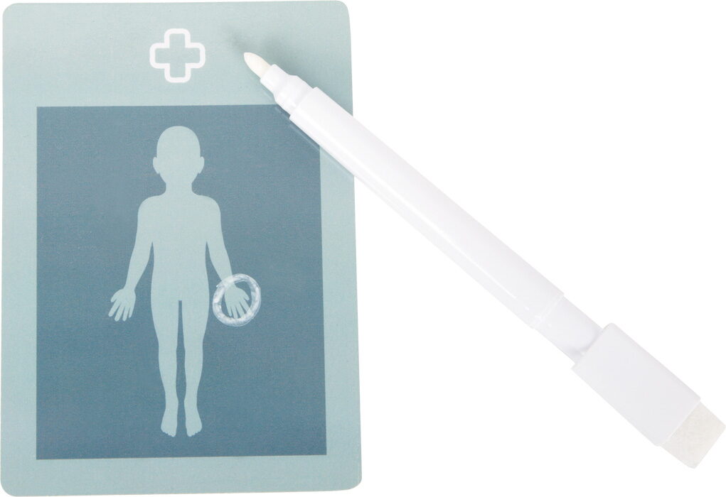 Pro malé lékaře a jejich velké mise! Tato praktická sada pro děti promění každou hru v opravdovou lékařskou návštěvu. Součástí je pevná látková taška se zipem a pohodlnými rukojeťmi, ideální pro přenášení, a bohatá kolekce kvalitních dřevěných hraček: stetoskop, zasouvací injekční stříkačka, teploměr s nastavitelným ukazatelem, pinzeta, špachtle, obvaz se suchým zipem a popisovatelné karty pacienta s fixou. Děti mohou naslouchat tlukotu srdce plyšového medvídka, aplikovat injekci panence nebo měřit horečku - možnosti hry jsou nekonečné. Pohyblivé části, jako zasouvací stříkačka a nastavitelný teploměr, podporují kreativitu a rozvoj koordinace. Taška je lehká a snadno se přenáší, perfektní pro hraní doma, v herně, na cestách nebo ve školce. Realistické prvky povzbuzují děti k objevování pečovatelských rolí, trénování jemné motoriky a zkoušení sociálních dovedností. Sada zároveň rozvíjí řeč, empatii a porozumění lidskému tělu a zdraví. Ideální pro přípravu na skutečné návštěvy u lékaře, nebo prostě pro zábavné hraní rolí s panenkami, kamarády či sourozenci. Hlavní vlastnosti: lékařská taška s rozsáhlým zdravotnickým materiálem ze dřeva obsahuje: injekční stříkačka, teploměr, zapisovatelná karta včetně popisovače, stetoskop, obvaz, špachtle a pinzetaodolná látková taška se zipem - kompaktní a přenosnáideální pro hraní rolí, sociální rozvoj a motorické dovednosti k dispozici ve dvou barevných variantách: šalvějově zelená a červená