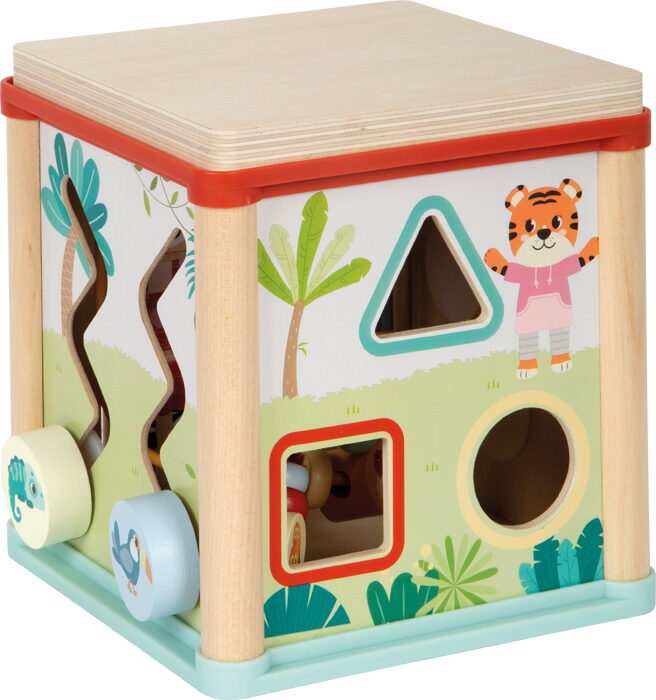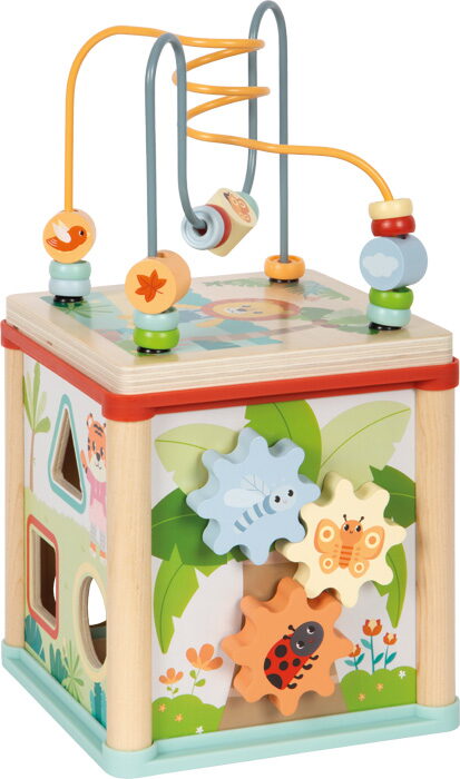 Pokud nemáte v dětském pokojíčku dostatek prostoru, je tato multifunkční motorická kostka ideální. Odnímatelné víko lze snadno uložit dnem vzhůru přímo uvnitř kostky, což šetří místo. Děti si mohou hrát s korálkovým bludištěm, skládáním tvarů, ozubeným kolem, posuvným bludištěm i otáčecími dlaždicemi. Tato hračka nabízí nepřeberné množství možností zábavy: korálkový labyrint, ozubená kolečka, vkládání tvarů, otočné kostičky s obrázky zvířátek a další. Díky příjemným barvám, roztomilým zvířátkům i dřevěnému materiálu se tato zábavná a naučná kostka stane jistě oblíbenou hračkou Vašich dětí a také pěkným doplňkem do dětského pokojíčku. Hlavní vlastnosti: odnímatelná vrchní část kostky s korálkovým labyrintemkompaktní rozměryrozvíjí koordinaci ruka-oko, zručnost a jemnou motorikutrénuje vnímání tvarů a barevstimuluje dětskou kreativitu Značka a certifikát FSC® (Forest Stewardship Council) zaručuje, že dřevo, ze kterého byl produkt vyroben, nebylo vytěženo nelegálně a pochází z lesů obhospodařovaných šetrným či přírodě blízkým způsobem, ve kterém jsou dodržovány přísné environmentální a sociální požadavky. Značka FSC® na výrobku znamená, že svým nákupem pomáháte chránit lesy a podporujete šetrné, odpovědné či přírodě blízké hospodaření, díky kterému jsou naše lesy stabilnější, zdravější, mají přirozenou druhovou skladbu a lépe odolávají negativním následkům klimatických změn.