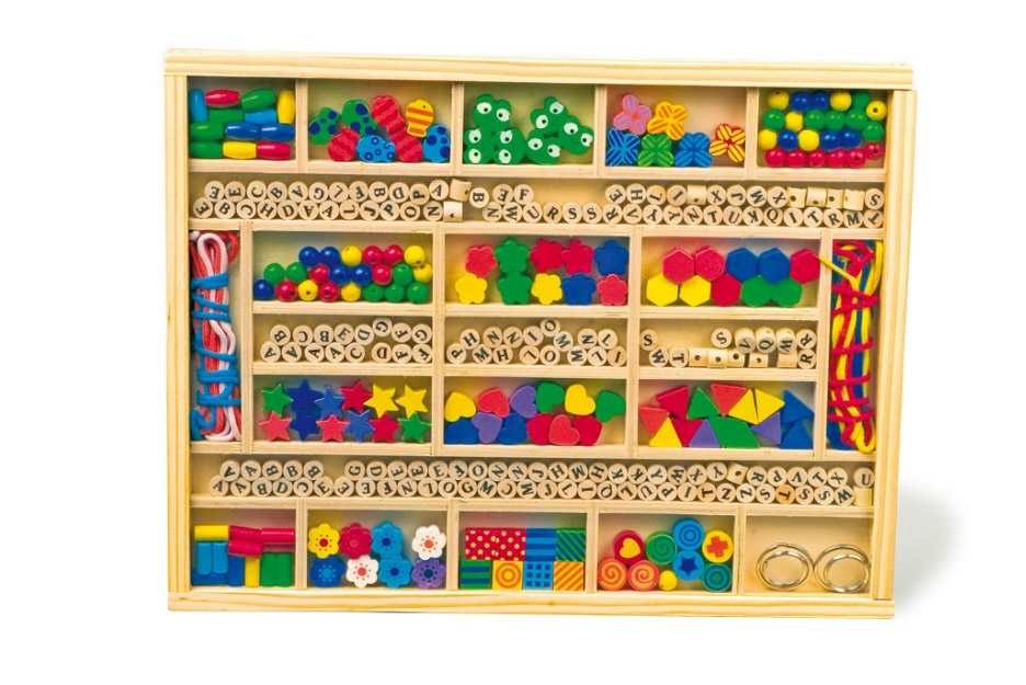 Box s různými přihrádkami na ukládání všelijakých šicích příslušenství - korálků. Navlékaní korálků pomáhá zlepšovat zručnost rukou.Německá firma Legler zaměřená na výrobu kvalitních dřevěných hraček od roku 1996. Všechny dřevěné hračky značky small foot mají označení CE a jsou vyráběny dle evropské normy pro bezpečnost hraček EN 71. Použité barvy jsou speciálně vyvinuty pro dřevěné hračky a jsou odolné i proti slinám dětí. Dřevo, které se používá pro tyto hračky, většinou pochází z lesnických společností zapojených do zalesňování. To nabízí všem zákazníkům možnost přispět k zachování přirozeně rostoucích lesů. Dřevěné hračky small foot jsou zářivě barevné produkty, které jsou vyrobeny převážně z přírodních surovin - dřeva. Dětem dělají radost od útlého věku, rozvíjí jejich hmatové a smyslové dovednosti. Cílem značky small foot je podporovat duševní a fyzický vývoj dětí.