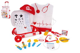 O zdraví panenek a plyšáků bude s doktorským kufříkem dobře postaráno! Obsahuje všechny důležité nástroje a pomůcky. Injekční stříkačka je vybavena pohyblivým pístem, aby hra byla uvěřitelná a děti se mohly cítit jako skuteční lékaři. Pevný a skladný kufřík je vybaven odolným kovovým zavíráním a uchem. Všechny součásti jsou robustní, vyrobené z masivního dřeva, opatřené zaoblenými hranami a kvalitní, hladkou povrchovou úpravou. Hlavní vlastnosti:stetoskop, injekce, kladívko, teploměr, špachtle, tuba, lékovka a zápisníkkufřík s odolným zavíráníminjekce s pohyblivým pístemrobustní a odolné provedení z masivního dřeva