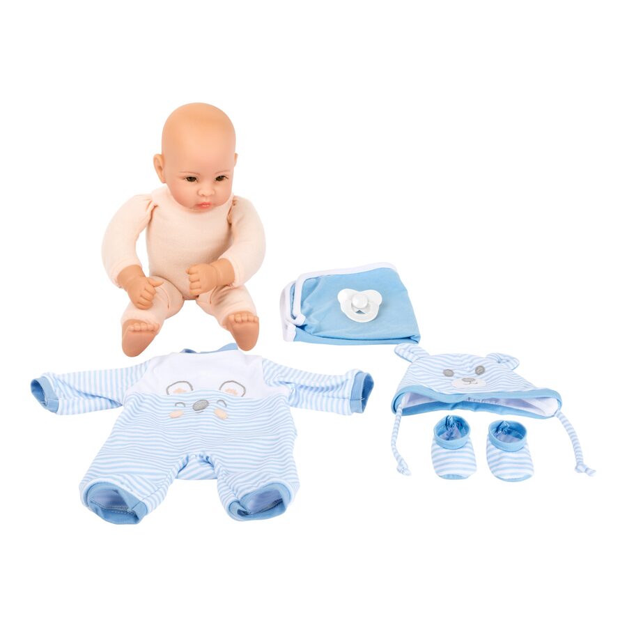 Panenka Lucas s měkkým látkovým tělem a plastovou hlavičkou a končetinami se spoustou doplňků. Oblečení pro panenku se snadno obléká i svléká. Součástí balení je i barevně sladěný dudlík a deka. Obzvláště realistický výraz obličeje s krásnýma nemrkacíma očima. S panenkami s měkkým tělem si hrají mladší děti, jejichž motorické dovednosti ještě nejsou tak vyvinuté. Hraní s panenkami podporuje rozvoj představivosti a sociálních dovedností. Dokonalý společník na hraní a mazlení díky měkkému tělu. Hlavní vlastnosti: měkké látkové tělíčkorozvíjí představivost a sociální dovednostisoučástí balení je oblečení panenky