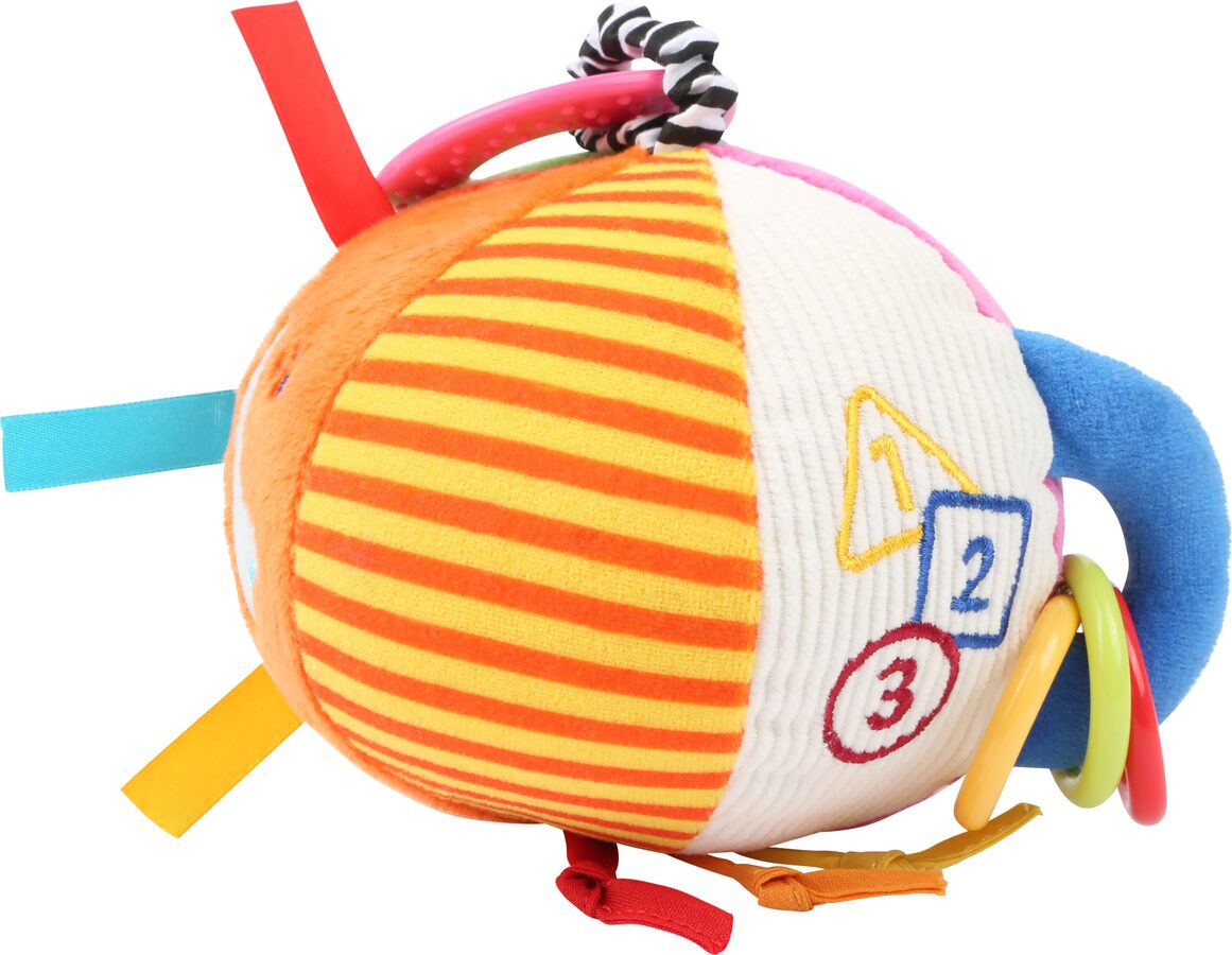 S tímto barevným míčkem si děti procvičí svou motoriku. Je to všestranná motorická hračka, která je míčkem i chrastítkem najednou. Různé typy látky, které jsou také různě barevné upoutají pozornost dětí.