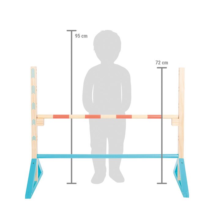 Kdo skočí nejvýše? Tato překážka pro děti je vyrobena ze dřeva. Je vhodná pro mnoho cvičebních her na zahradě, v tělocvičně nebo doma. Ať už jako traťová překážka, jako překážka pro koně, nebo jako tyč pro skok do výšky. Dřevěná překážka podporuje zábavu ze cvičení a je vhodná i pro psí agility s vaším milovaným čtyřnohým kamarádem. Se srozumitelným výškovým značením, které je snadno pochopitelné i pro menší děti bez znalosti čísel. Výška skoku se může pohybovat mezi 20 – 70 cm. Moderní trendy barvy dělají ze skákací překážky pro děti absolutní poutač mezi outdoorovými hračkami. Výšku překážky lze libovolně nastavit a obtížnost měnit. Hlavní vlastnosti: odolné dřevěné provedení vhodné pro mnoho pohybových her venku i uvnitřlze použít pro psí agilityvýška skoku 20-70 cm