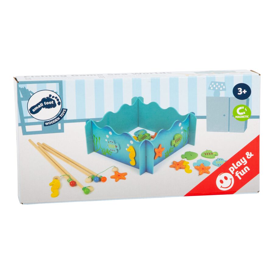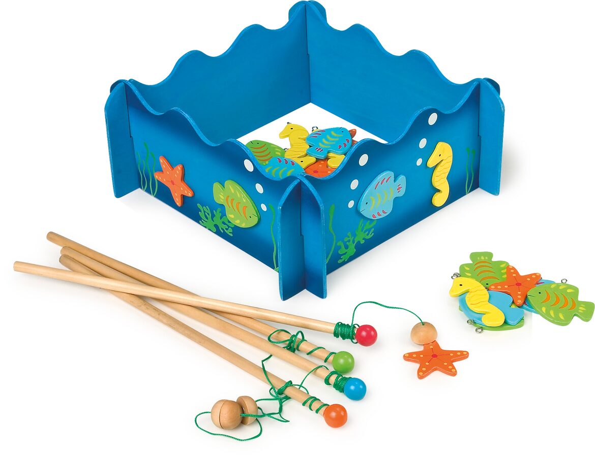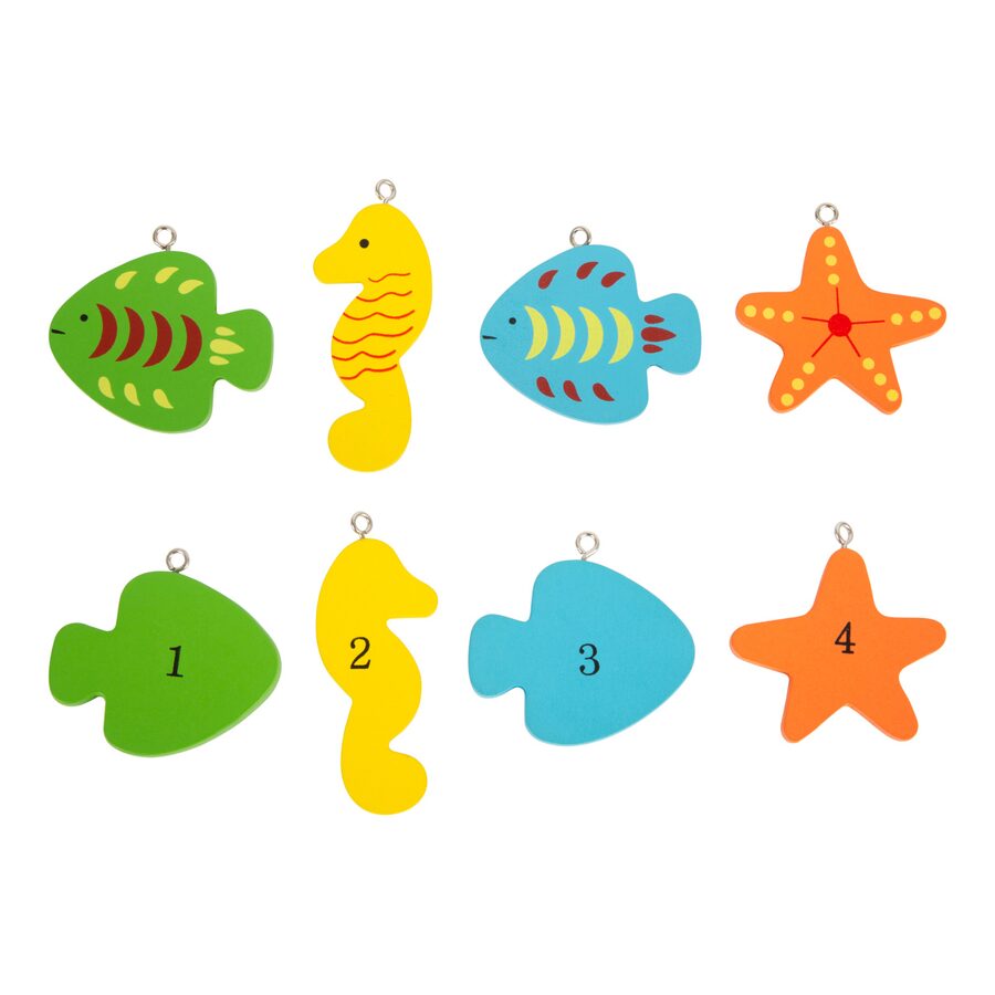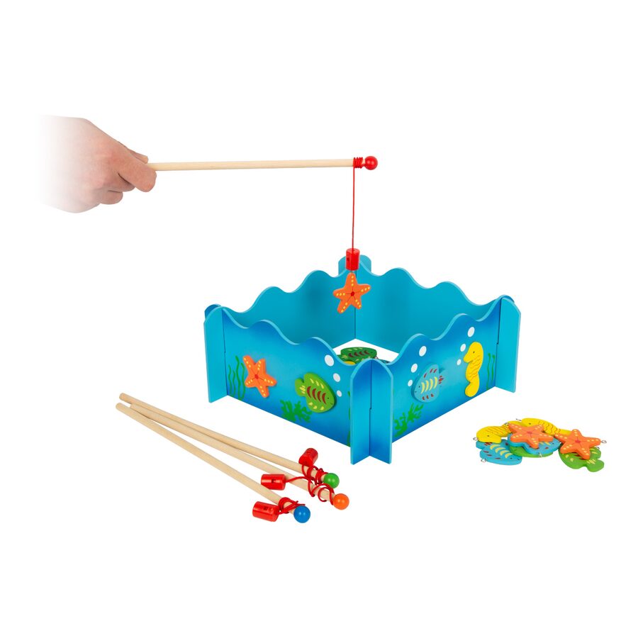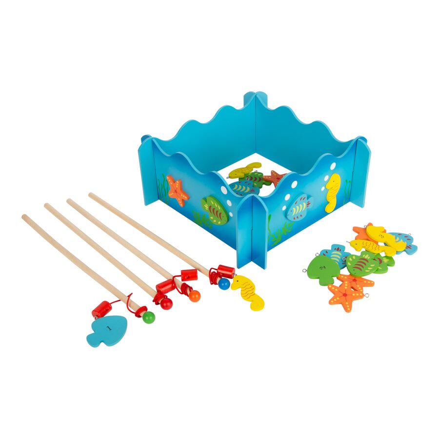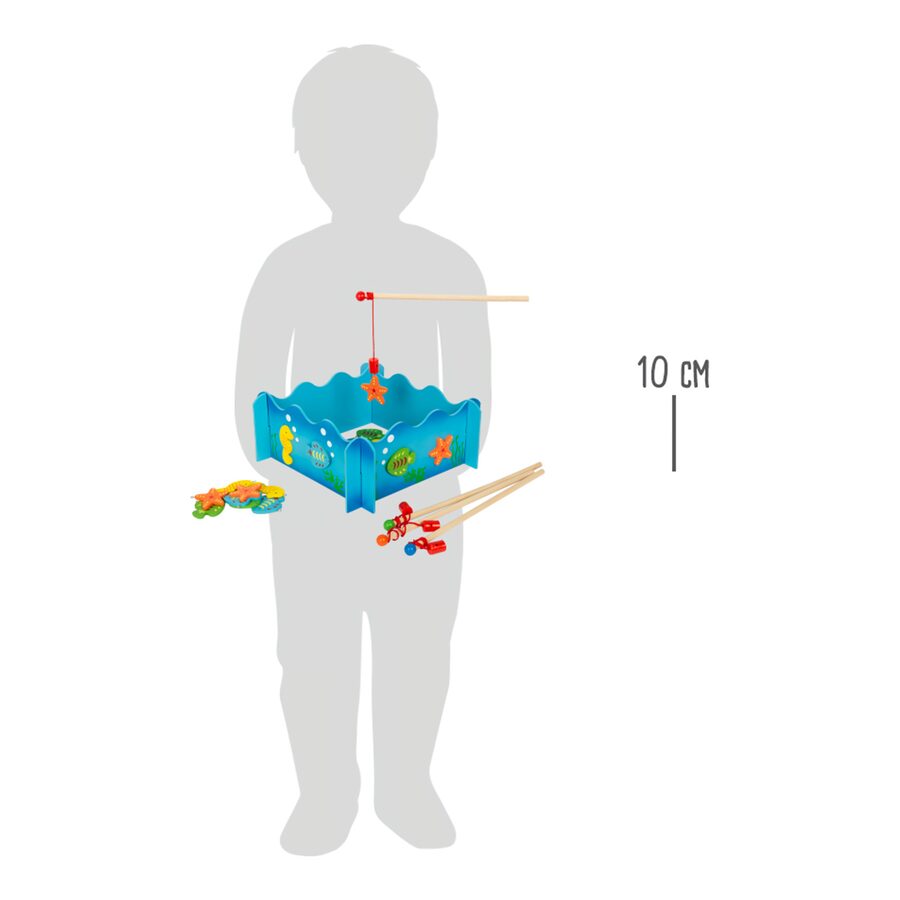 Kdo uloví více ryb? S touto dřevěnou rybářskou hrou ve formátu 3D můžete snadno chytat dřevěným rybářským prutem s magnety barevné ryby a mořské koníky. Hlavní vlastnosti: procvičuje zručnost a rozvíjí trpělivost4 rybářské pruty