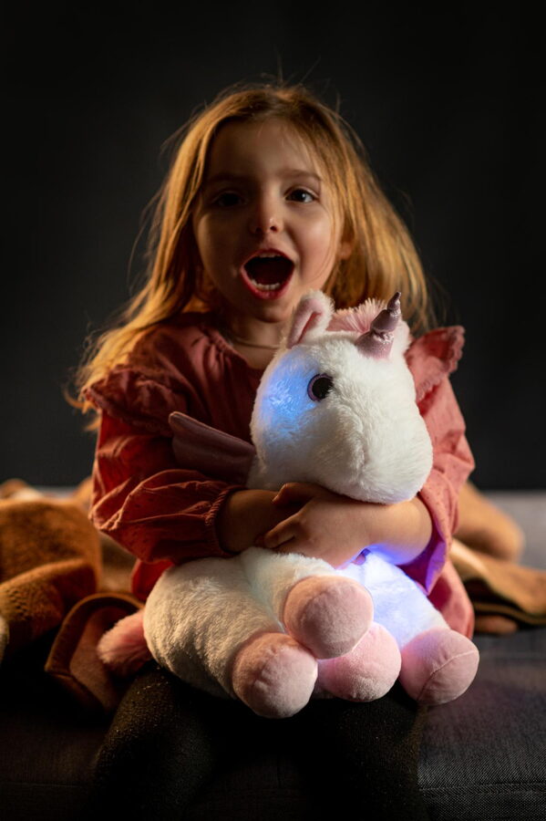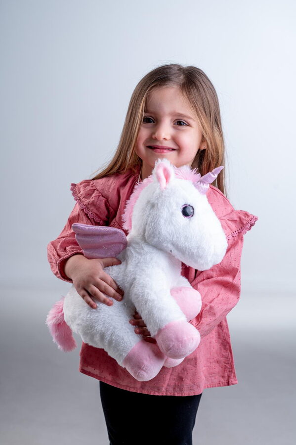 Roztomilý plyšový jednorožec s křídly je vyroben z kvalitní jemné plyše. Tento plyšový kousek je ideálním dárkem! Jednorožec s křídly pomáhá dětem snadněji usnout. Po zmáčknutí tlapky hraje klidnou relaxační hudbu. Ve tmě svítí a mění barvy.