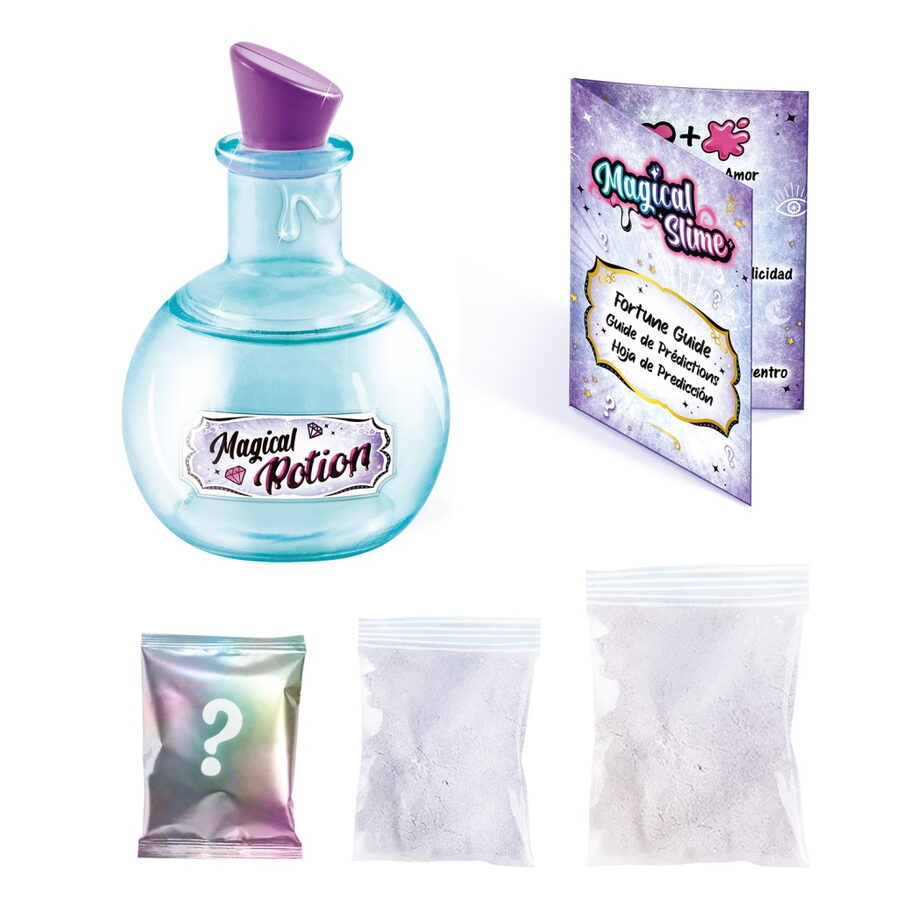 Novinka So Slime Magický elixír – lektvar zabaví tvořivé ruce a prozradí i tajemství budoucnosti. Smíchejte prášek magického slizu s vodou a přidejte přísady, které odhalí vaši budoucnost! Součástí je nádoba, sliz, návod a karta předpovědí, která podle barvy vytvořeného slizu odhalí budoucnost! Sesbírejte všechny 3 lektvary magického slizu. Vhodné pro děti od 6ti let.