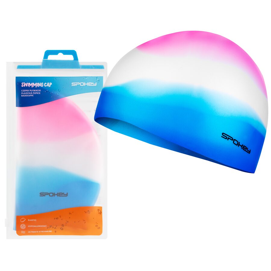 Spokey ABSTRACT-Plavecká čepice silikonová růžovo-bílo-modrá