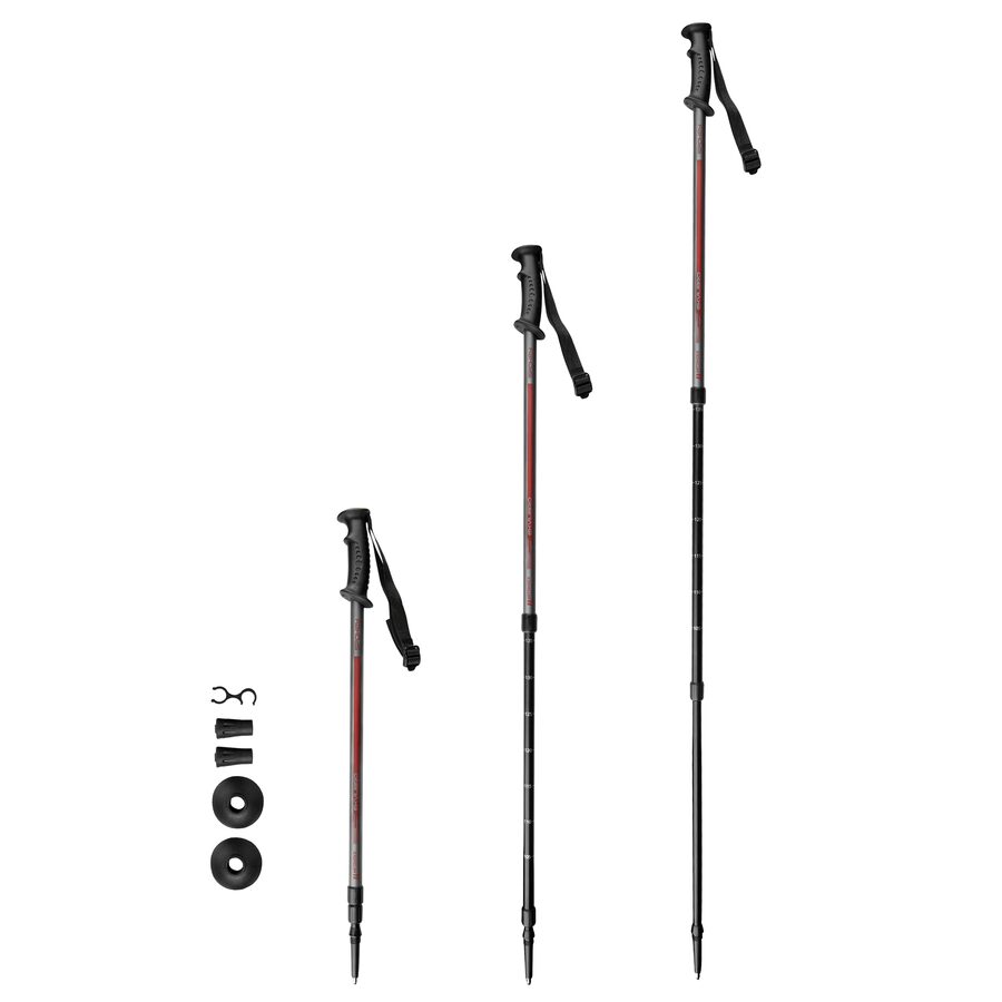 - mají nastavitelnou výšku v rozmezí 105–135 cm, takže si zvolíte délku holí přesně podle svých potřeb