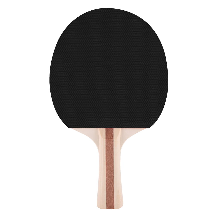 - rukojeť a deska pálky jsou vyrobeny ze 3 vrstev tvrdého dřeva, a dřevo pálky je oboustranně potaženo vysoce kvalitní gumou s pěnou o tloušťce 1,3 mm