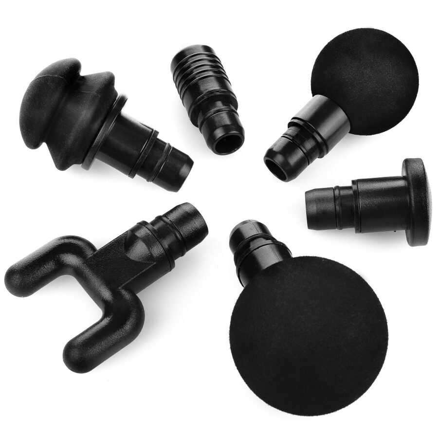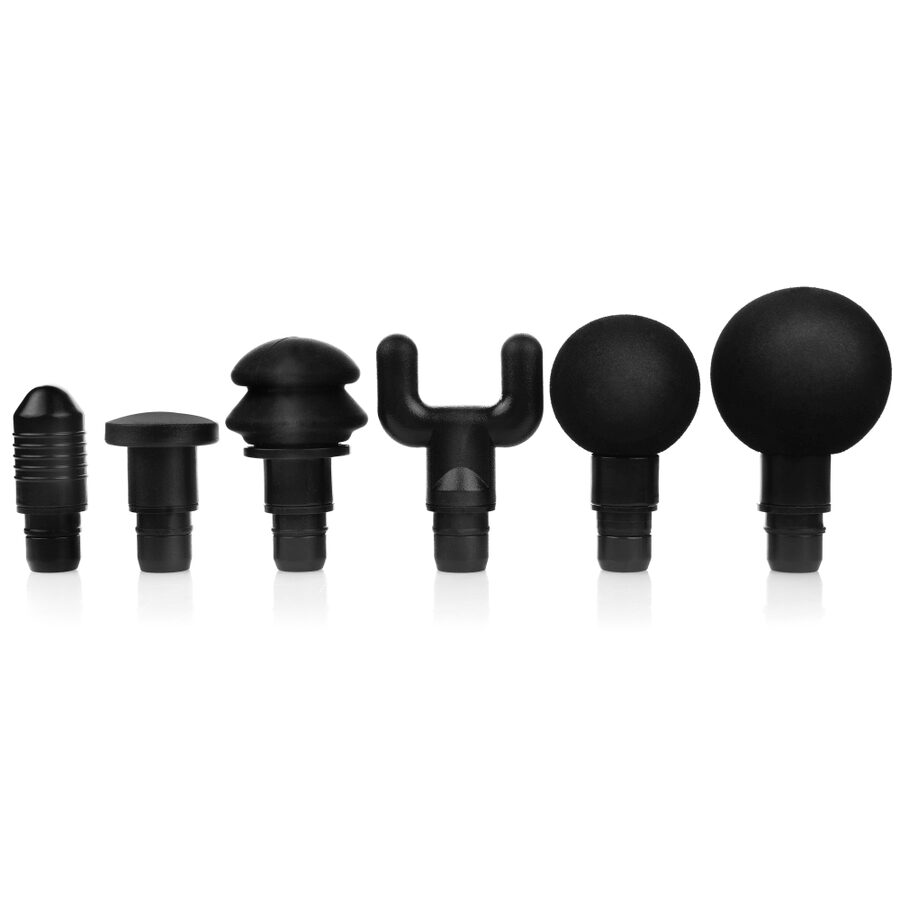 Balení obsahuje: sadu 6 vyměnitelných masážních hlavic, z nichž 3 mají vysokou tvrdost, 2 střední tvrdost a 1 je měkká.